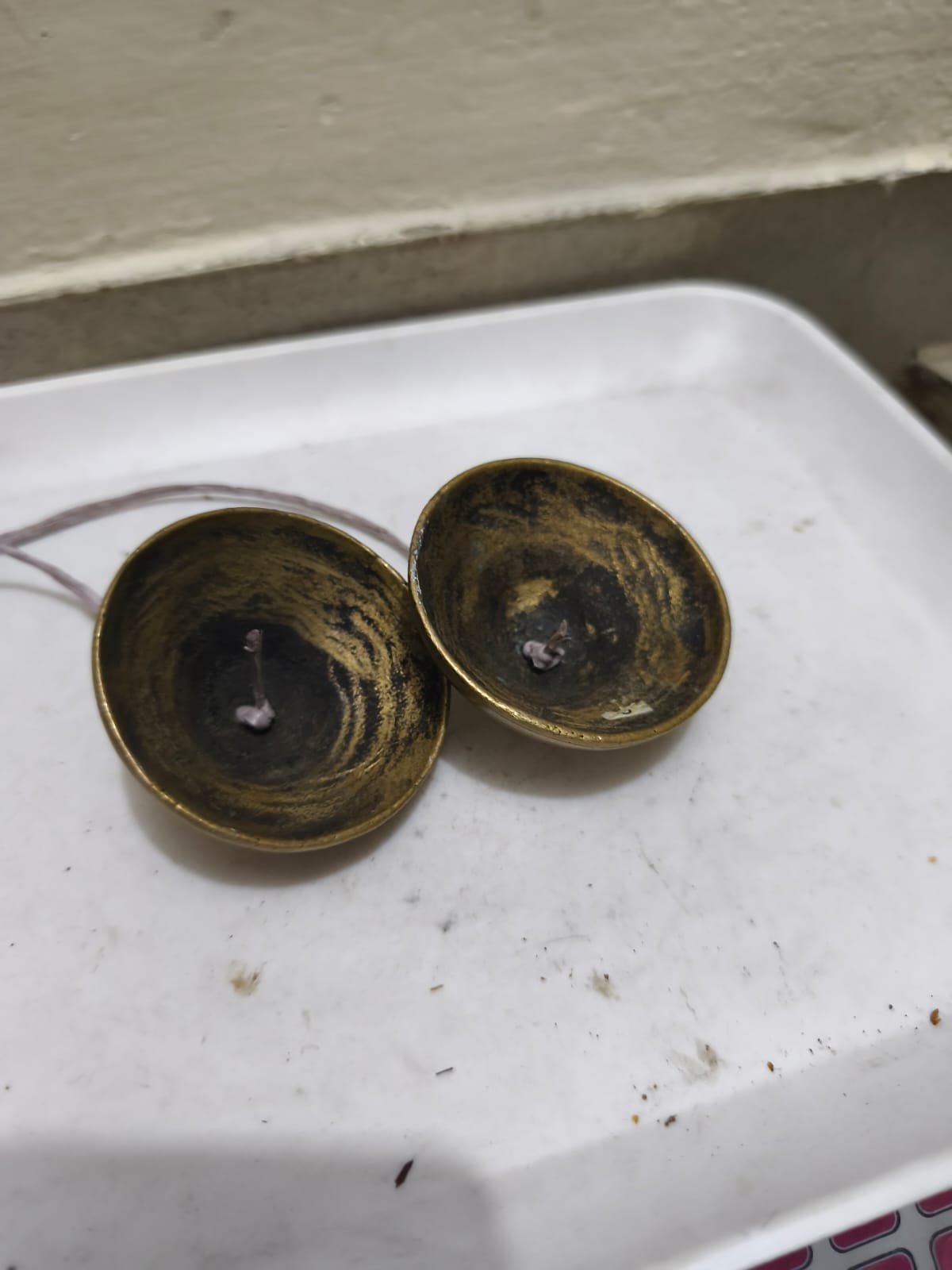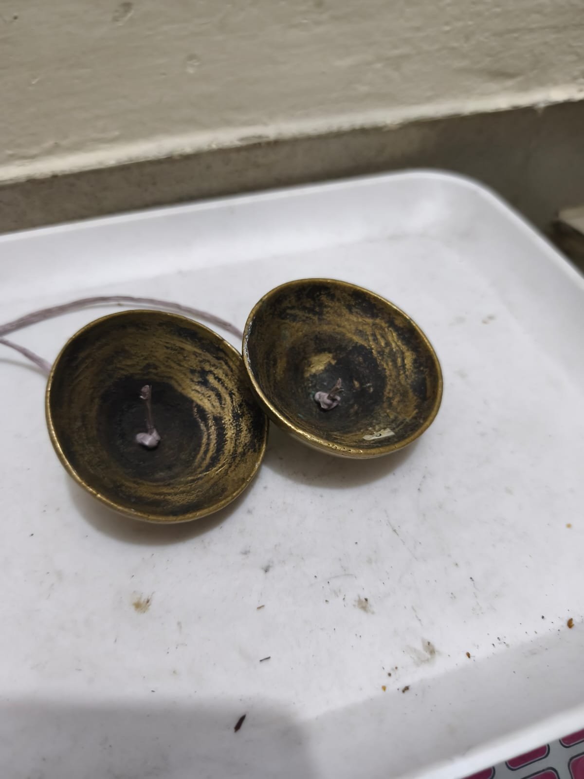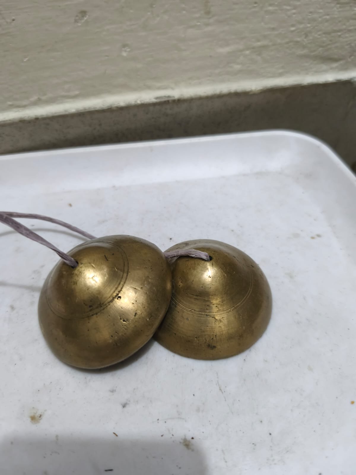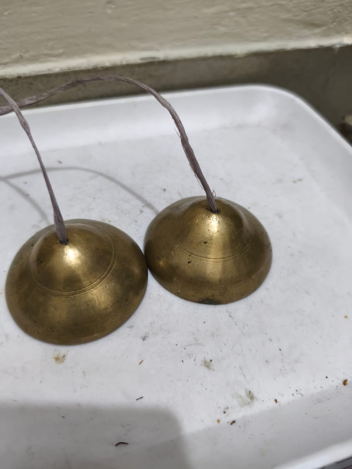 একজোড়া মাঞ্জিরাদেখানো হয়েছে , যা ভারতে বাদ্যযন্ত্র হিসেবে ব্যবহৃত ছোট, ঐতিহ্যবাহী হাতের করতাল।