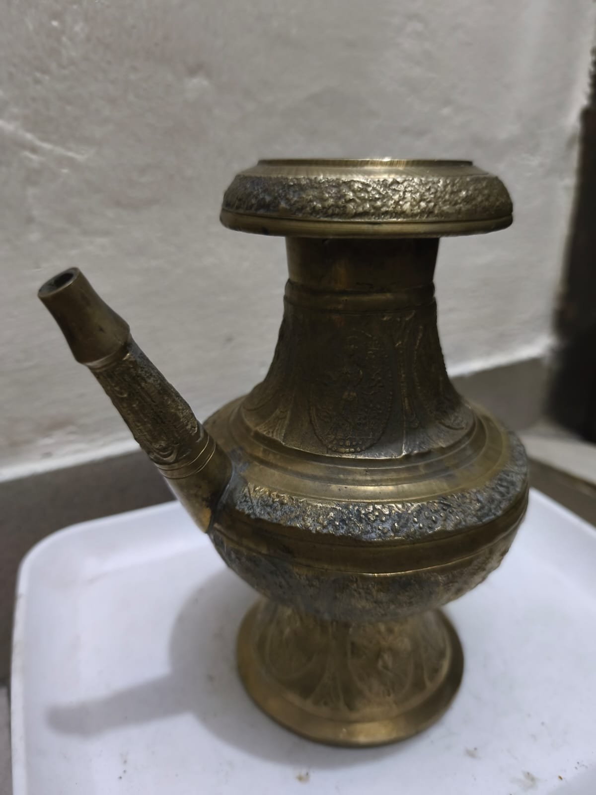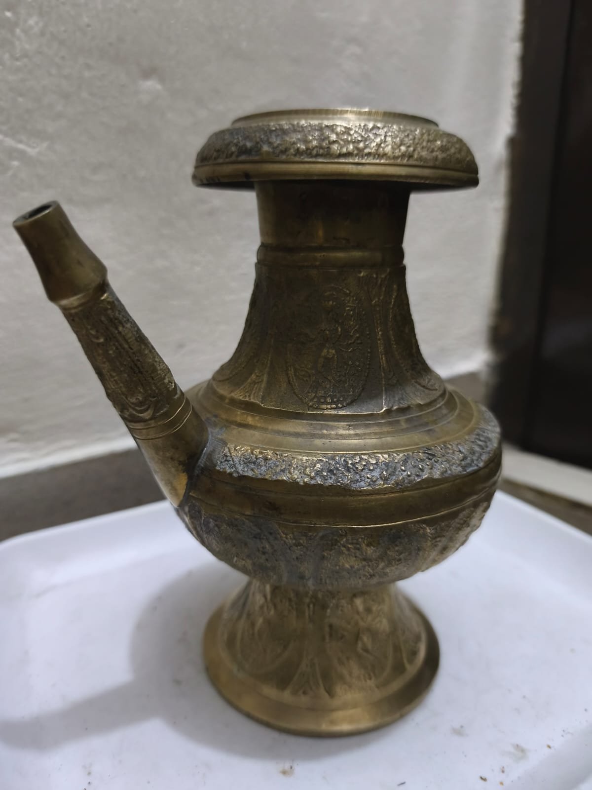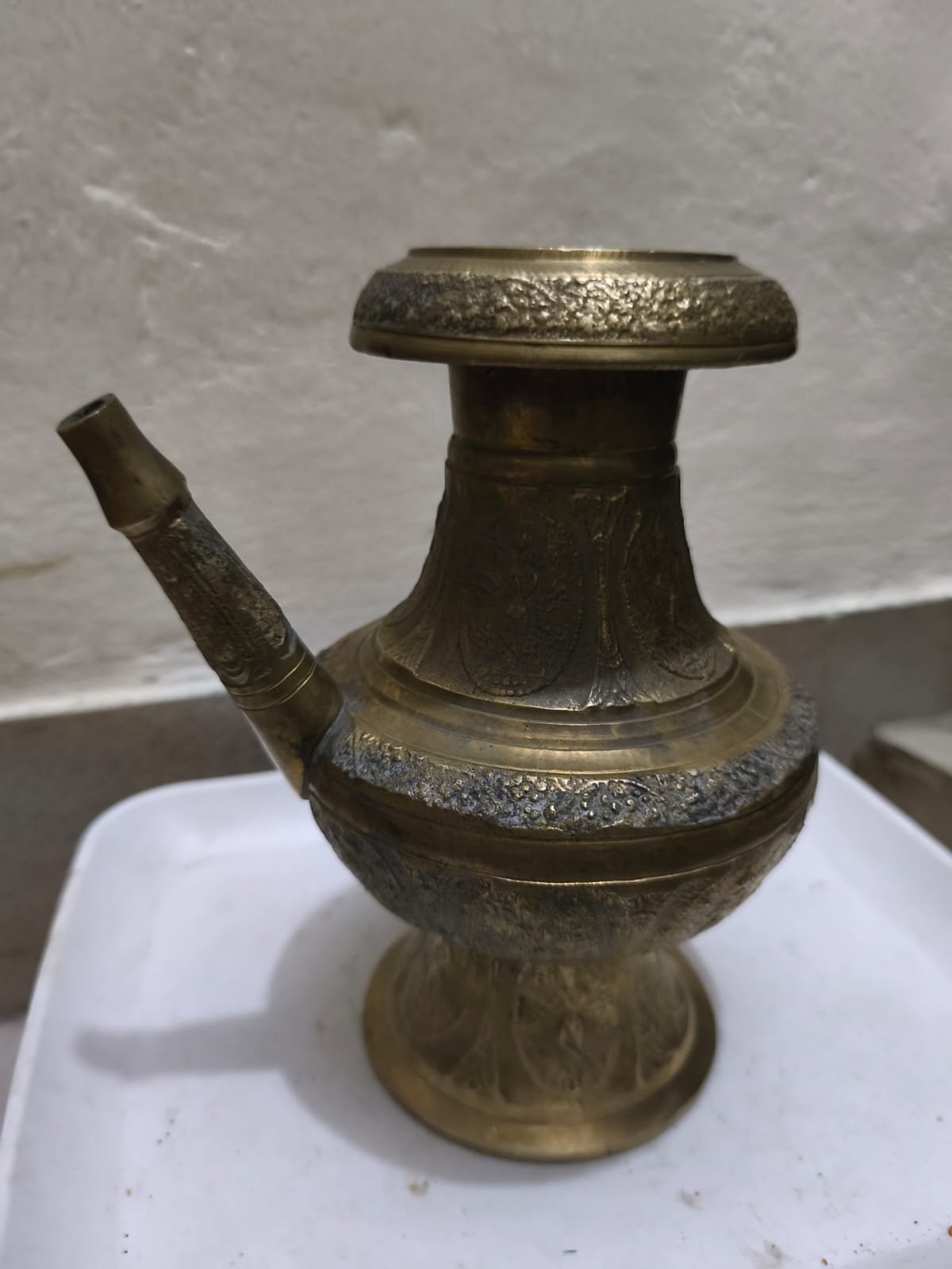 - পাত্রটির একটি গোলাকার দেহ, ঢালার জন্য একটি সরু নালী এবং একটি ছোট বাতাসের ছিদ্র সহ একটি ঢাকনা রয়েছে।