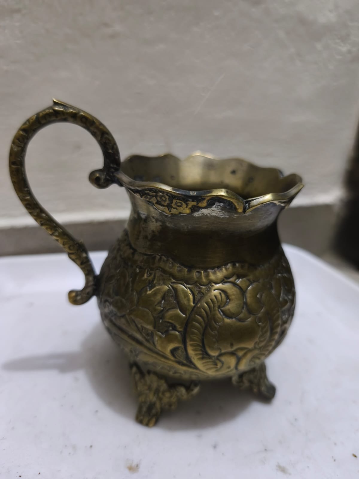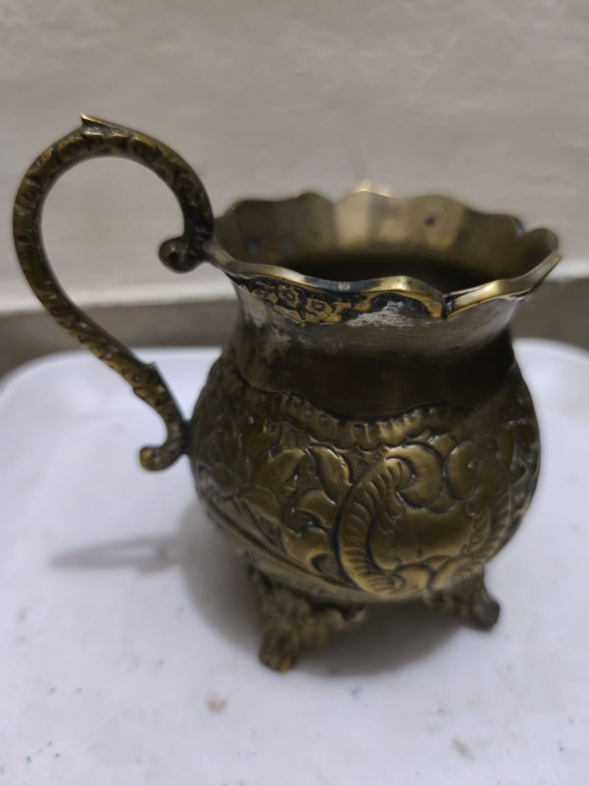 একটি পিতলের অলংকারি জগ/ক্রীমার (ছোট দুধ ঢালার পাত্র)-এর মতো মনে হচ্ছে।