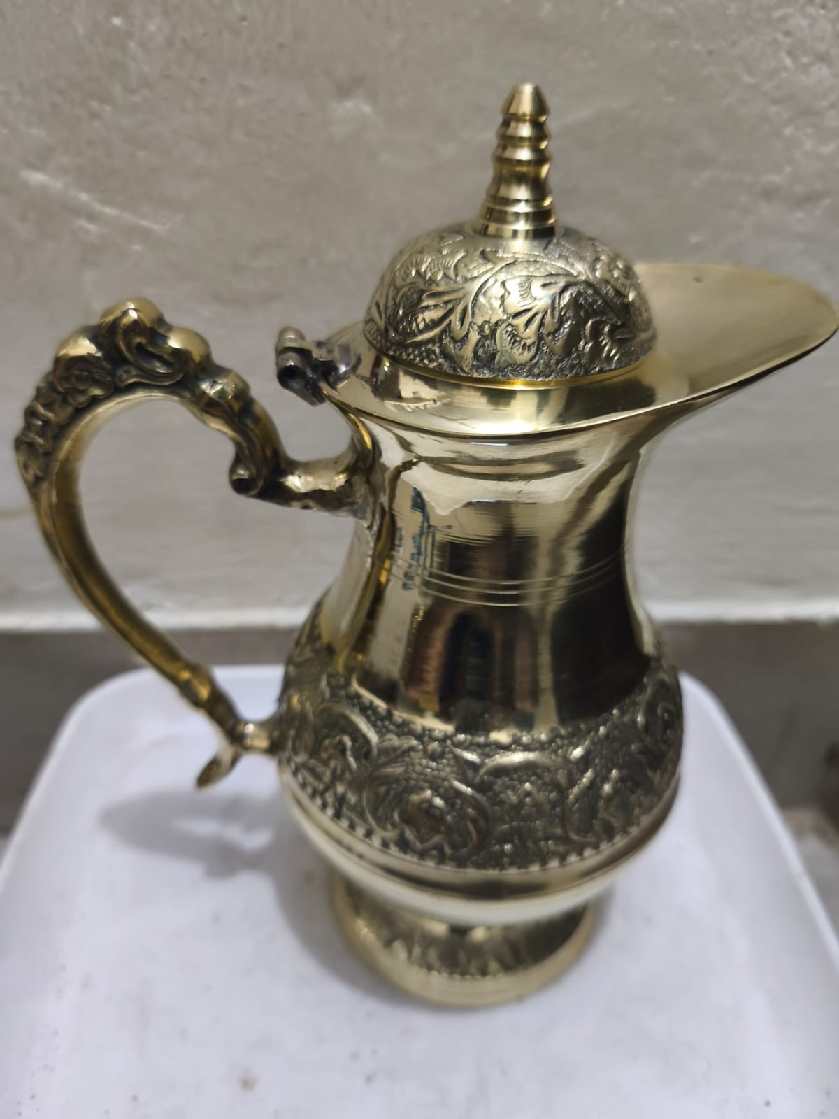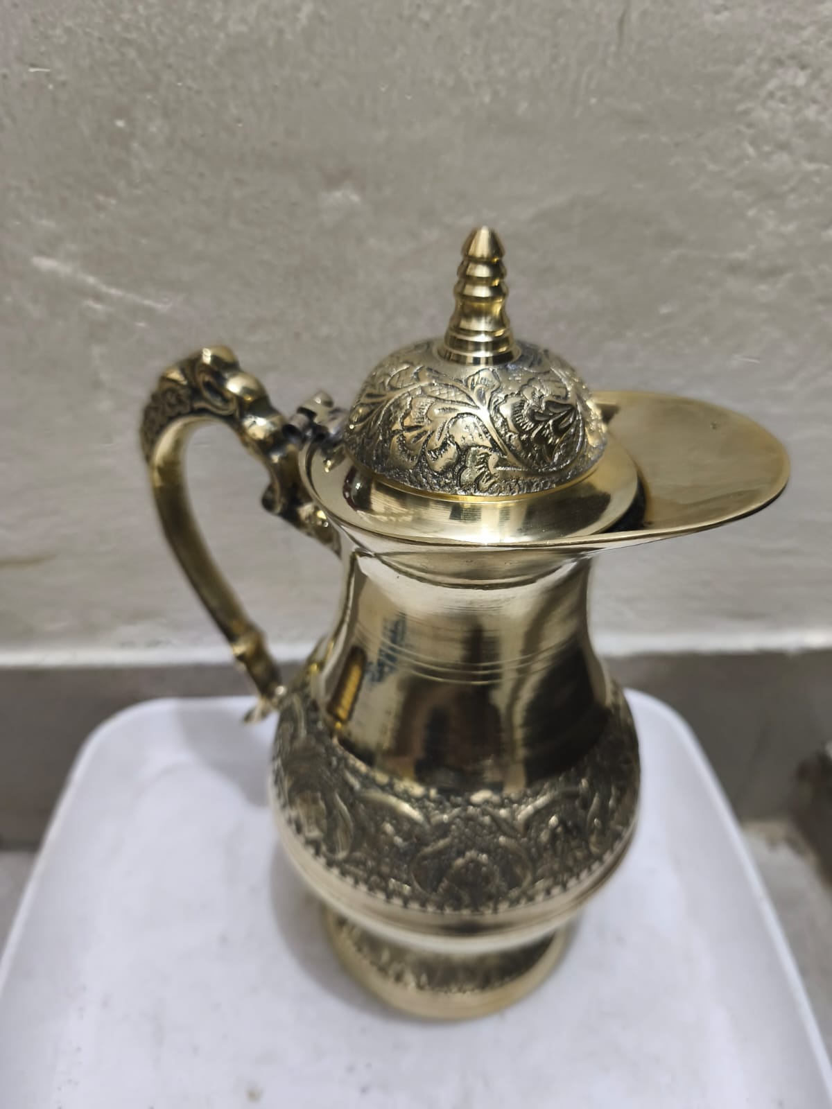 একটি পিতলের ঢাকনাসহ জলের জগ