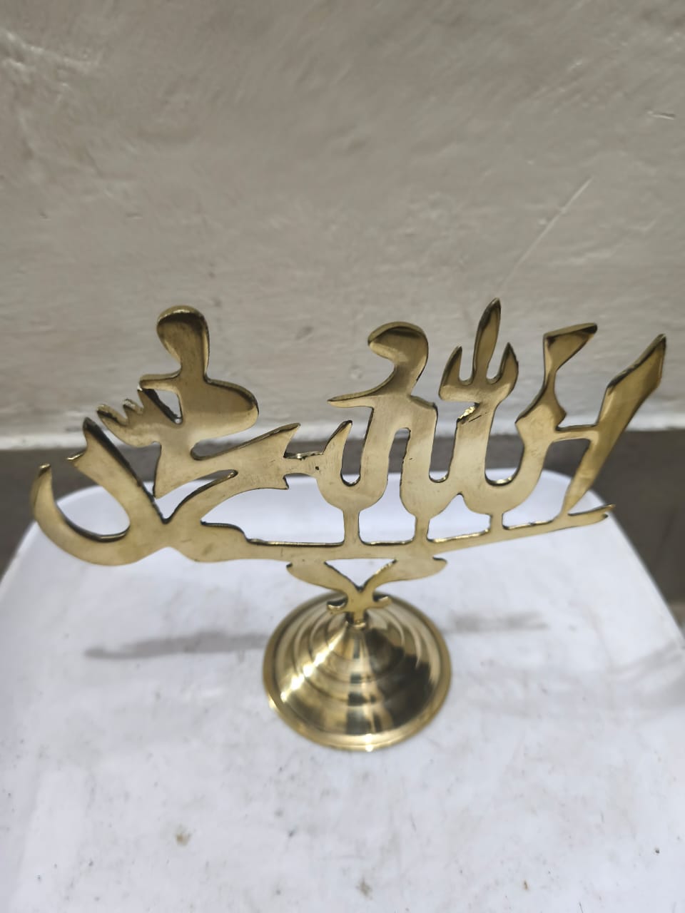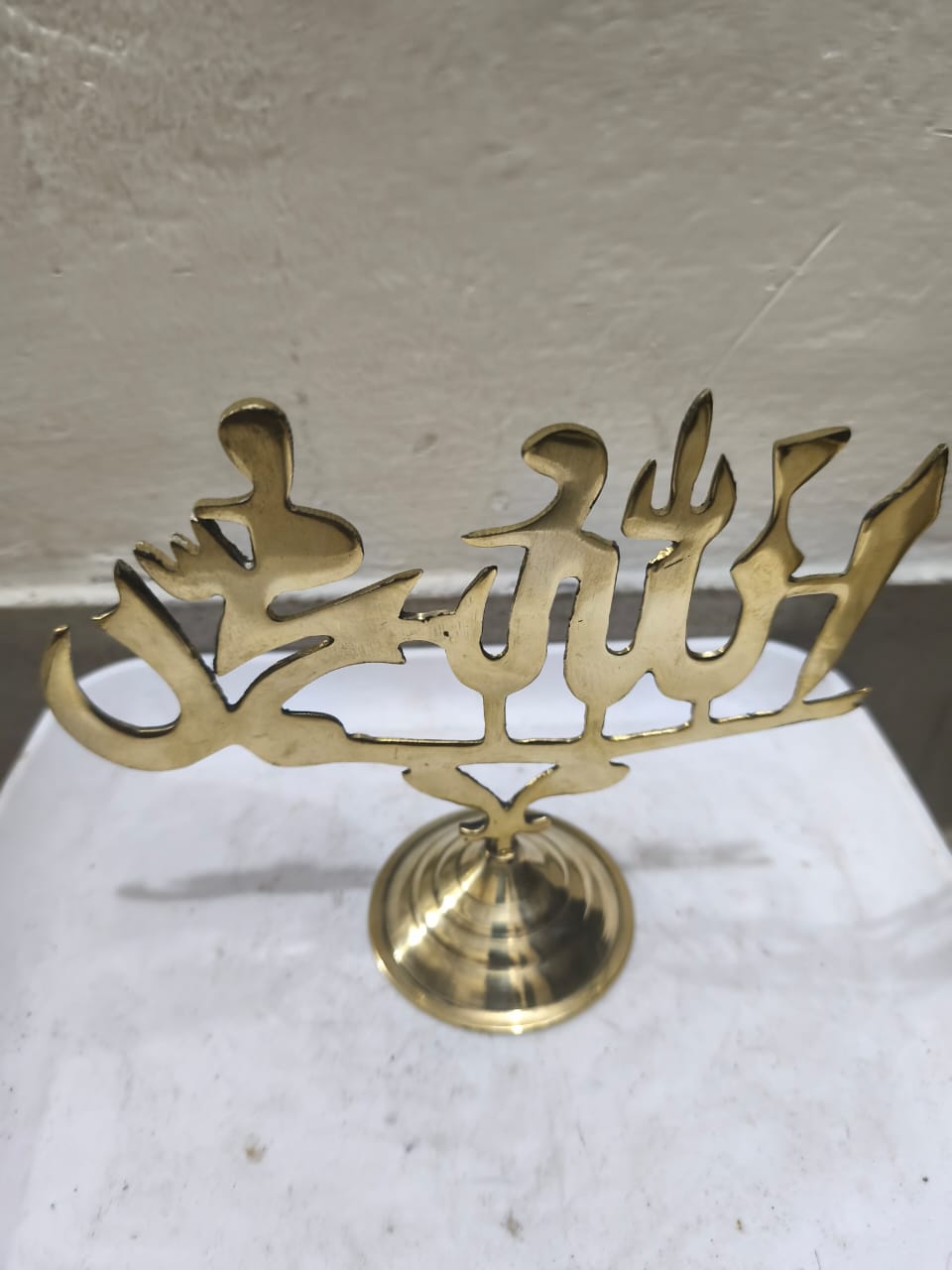 একটি পিতলের তৈরি শোপিস(আরবিতে 'আল্লাহু' এবং 'মুহাম্মদ' (সঃ) লেখা রয়েছে)