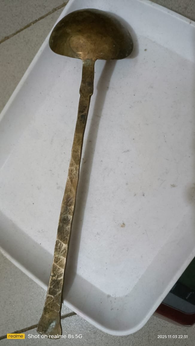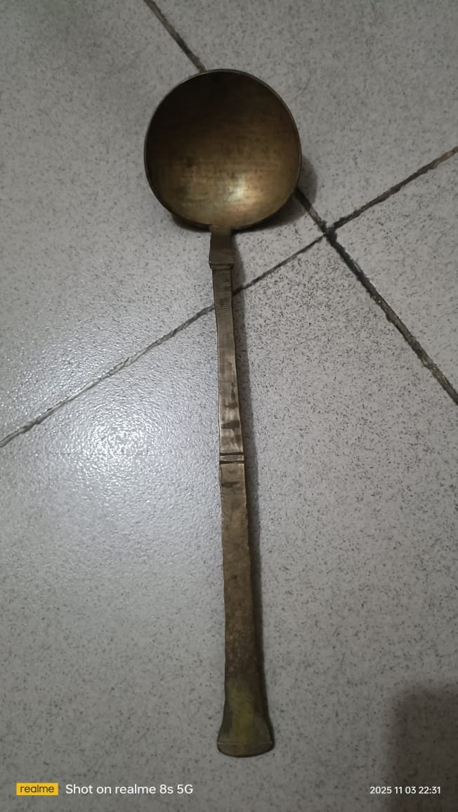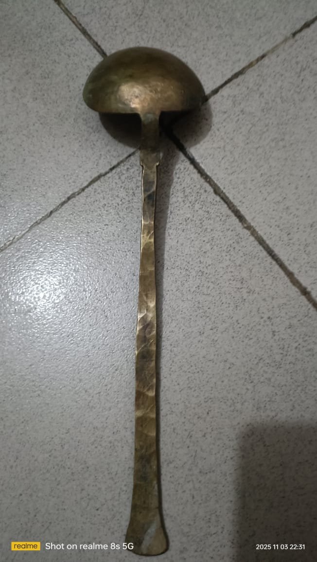 একটি পিতলের হাতা বা রান্নার চামচ।