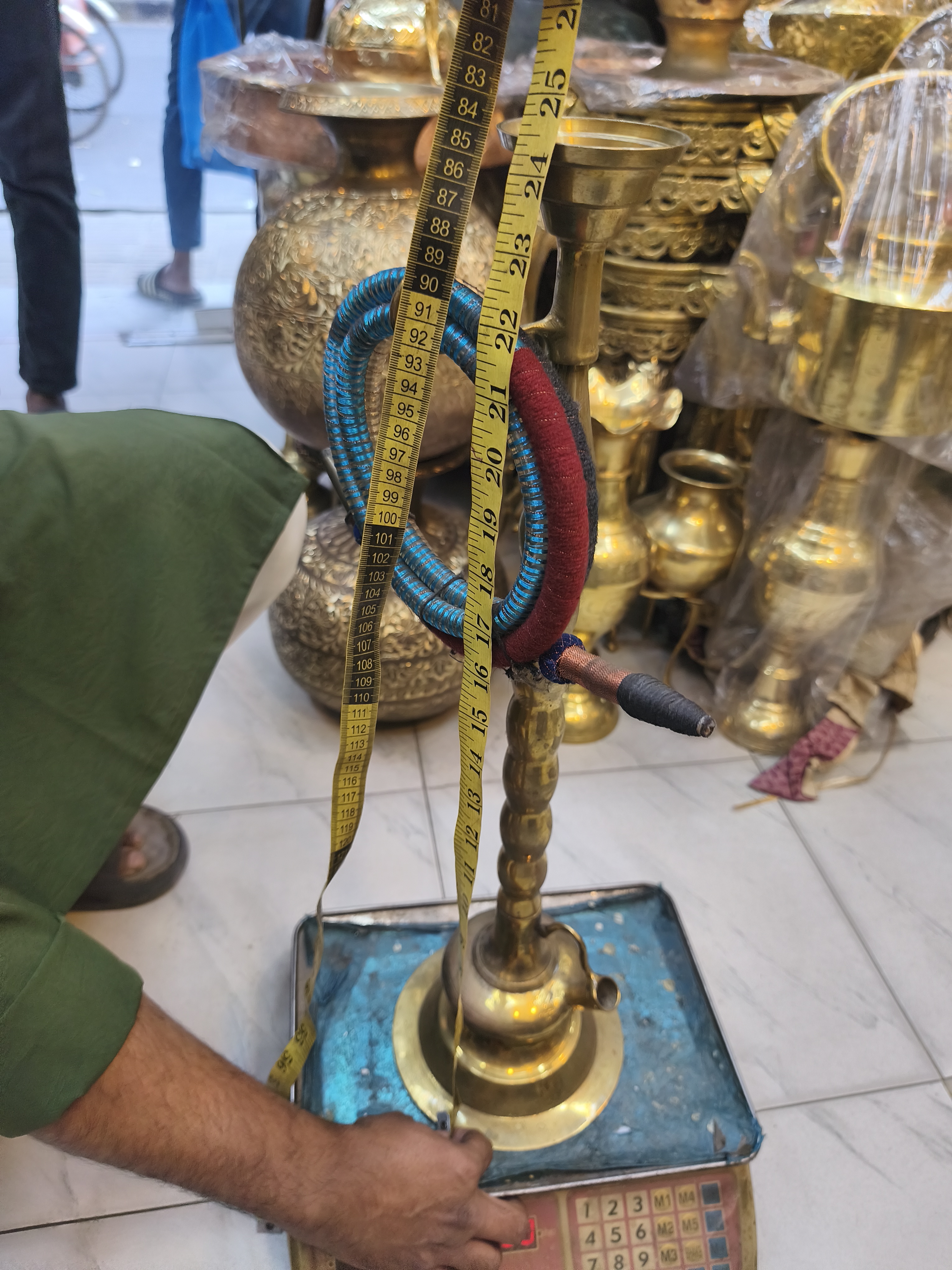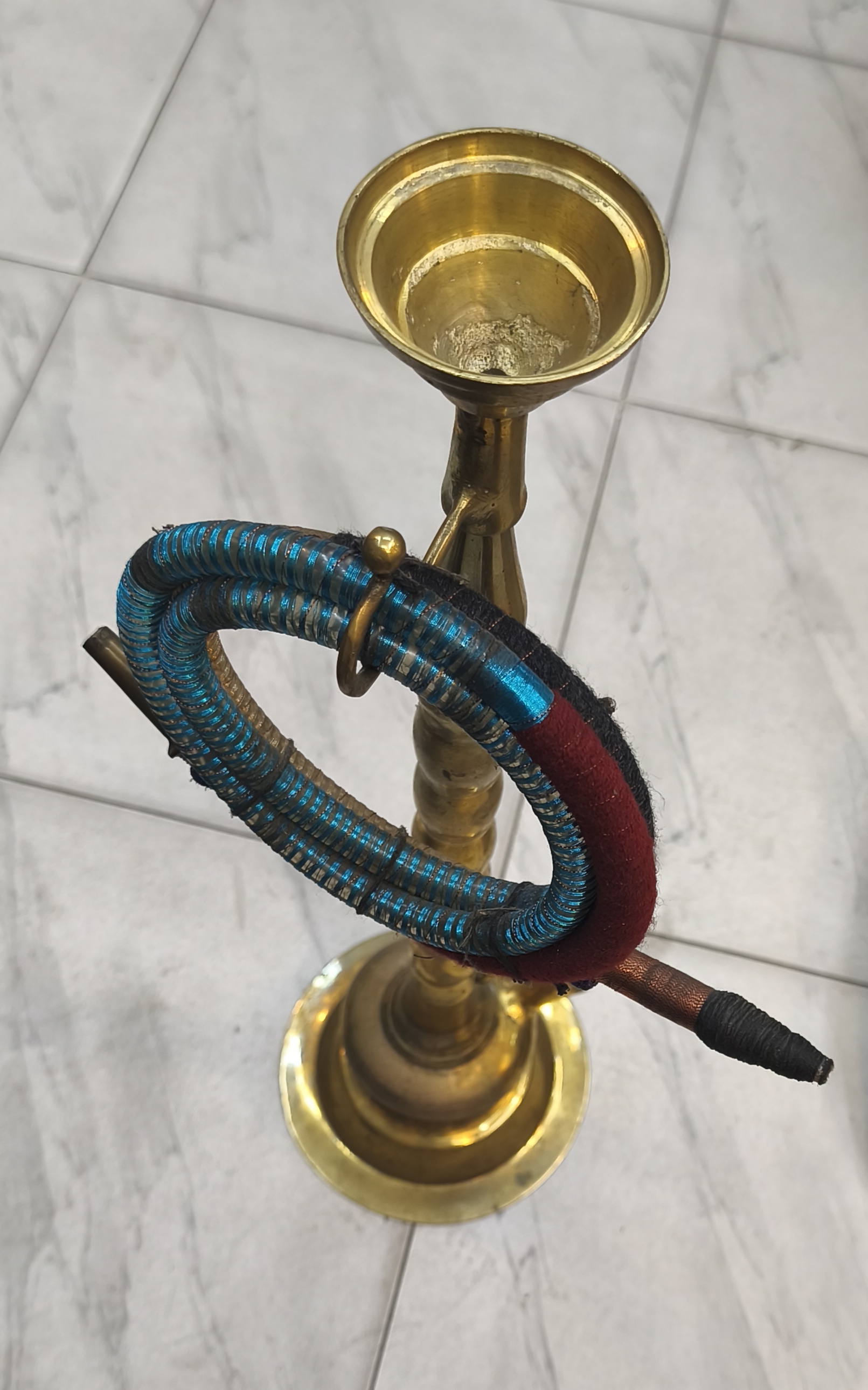 - পাইপটি রঙিন সুতো দিয়ে মোড়ানো, নীল, কালো এবং লাল অংশ বিশিষ্ট।
