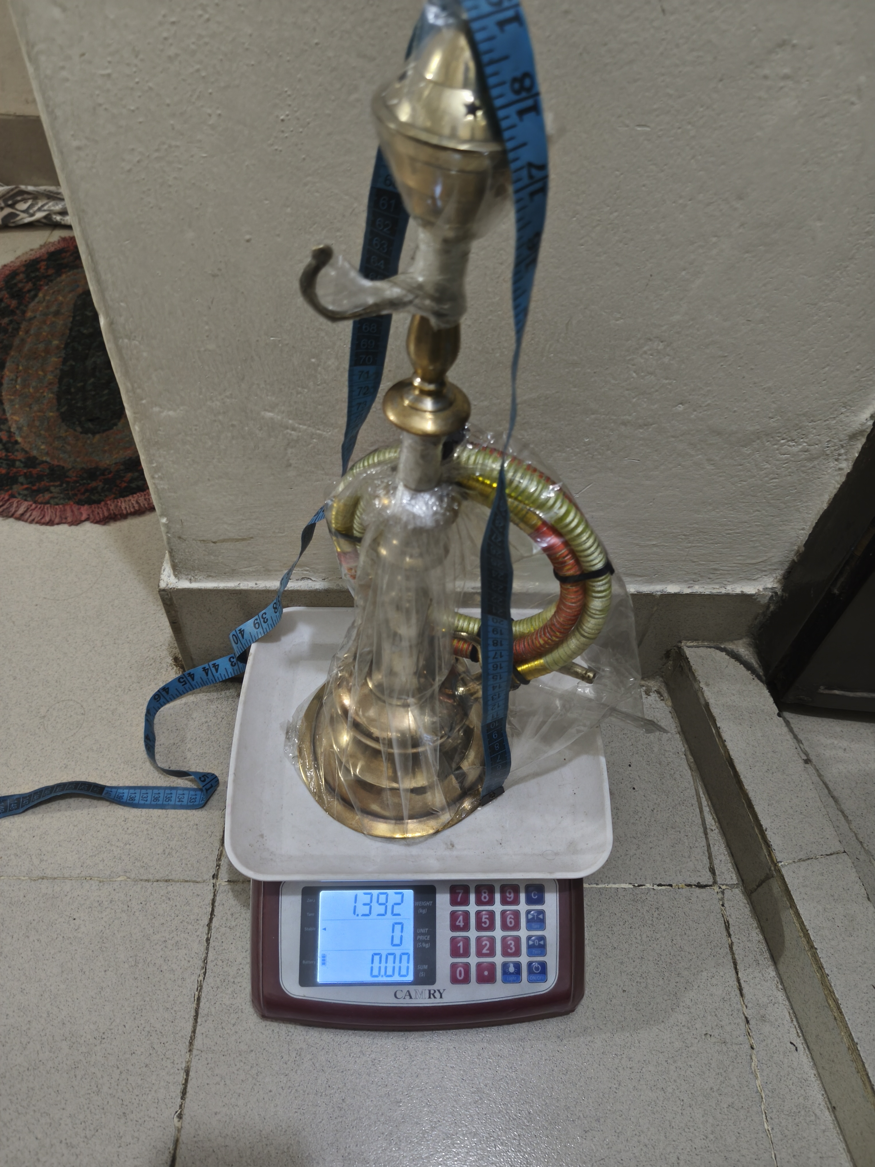 - পাইপটি রঙিন সুতো দিয়ে মোড়ানো, নীল, কালো এবং লাল অংশ বিশিষ্ট।