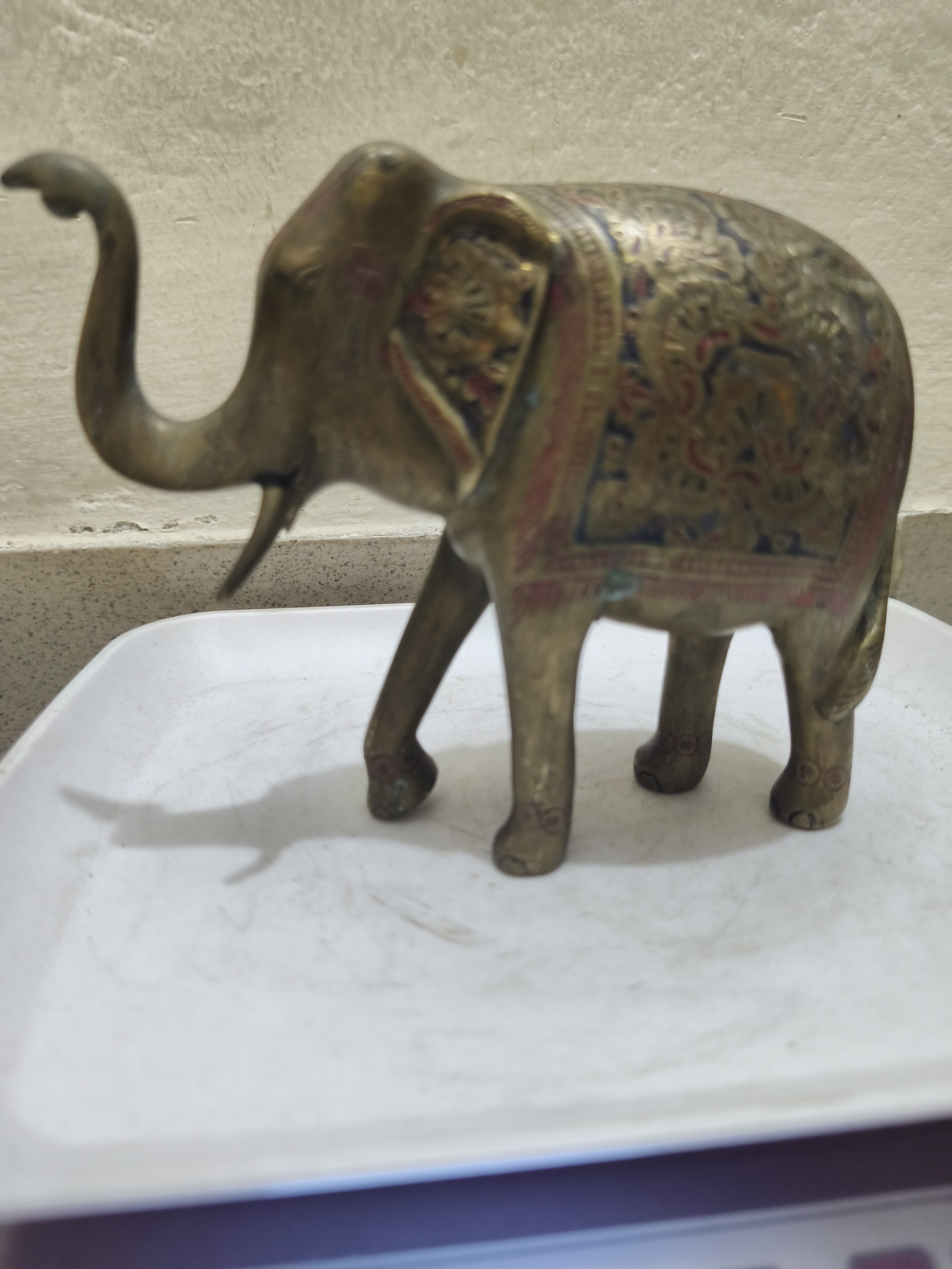 একটি পুরোনো দিনের, হাতে আঁকা পিতলের হাতির মূর্তি