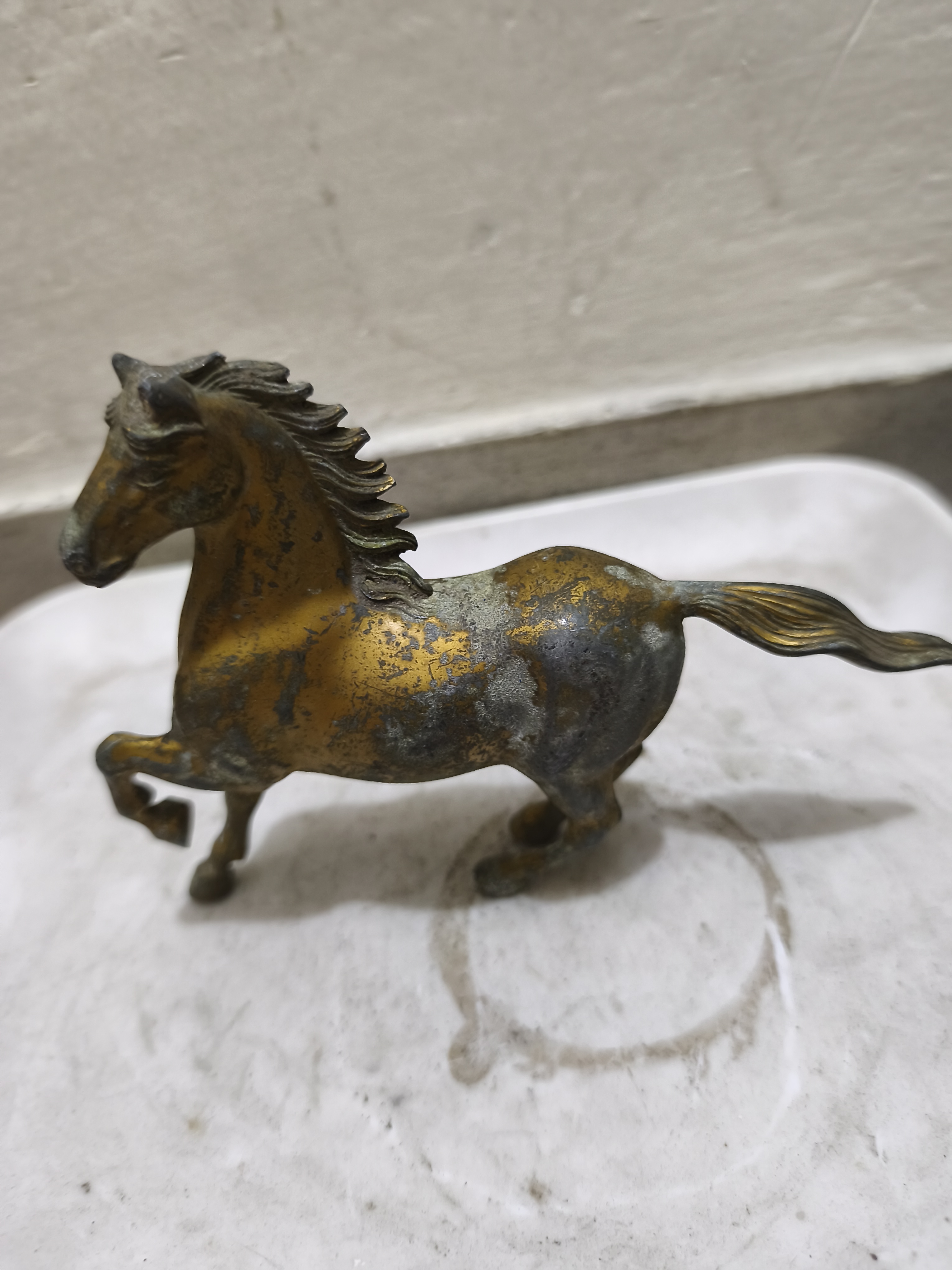 একটি পুরোনো পিতলের ঘোড়ার মূর্তি
