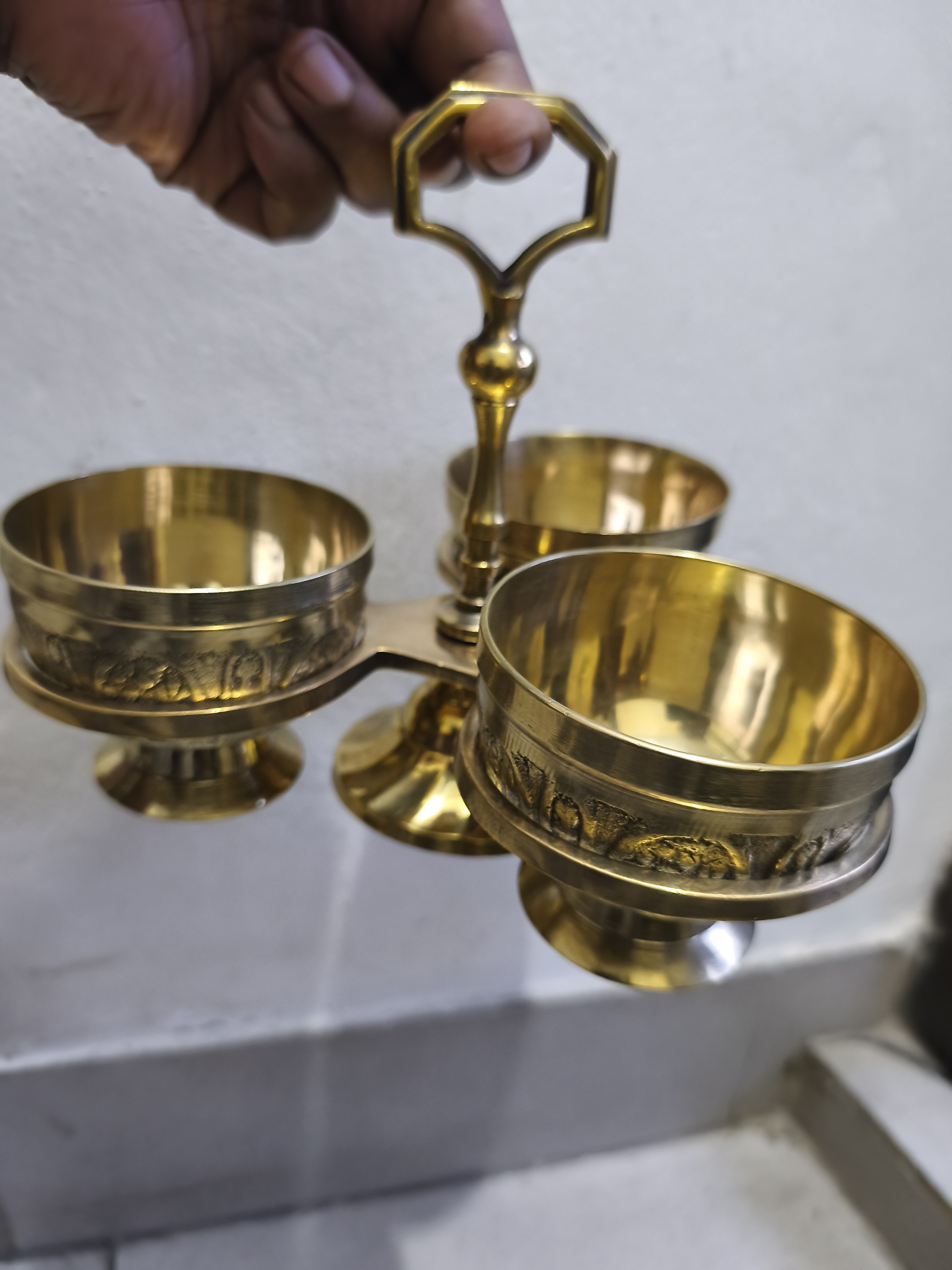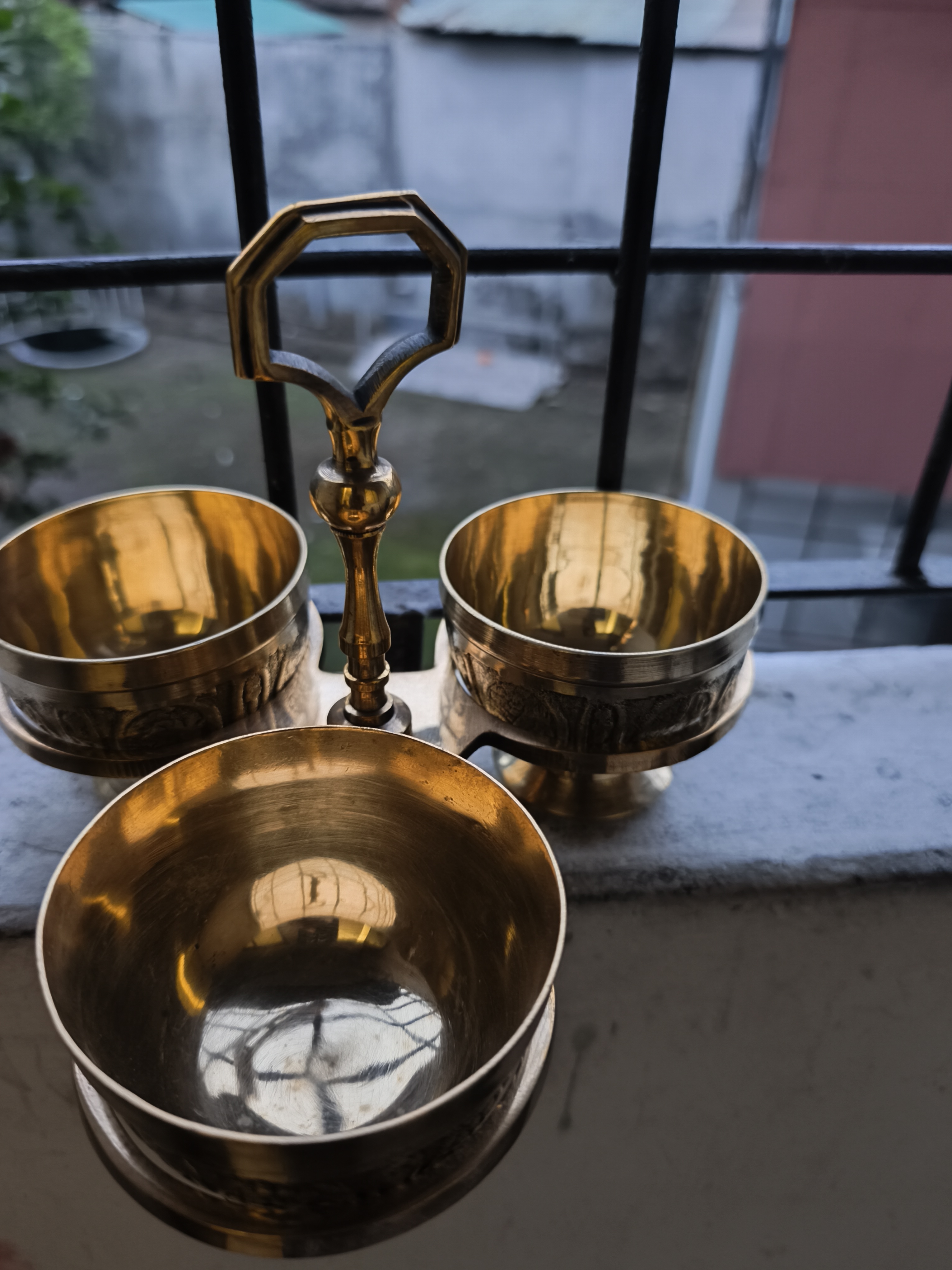 একটি পুরোনো পিতলের মসলার সেট/চা সেট (৩কাপ)