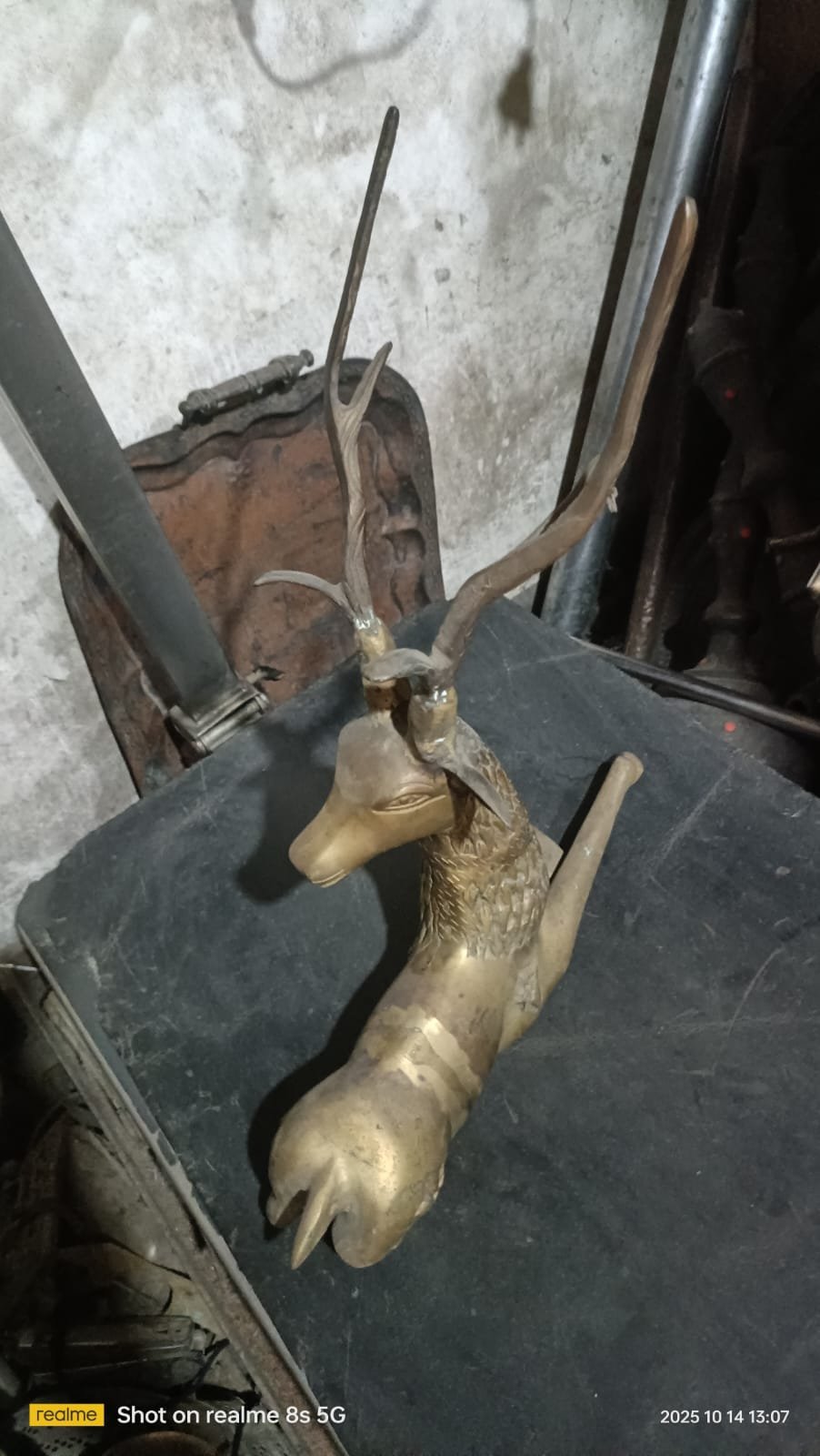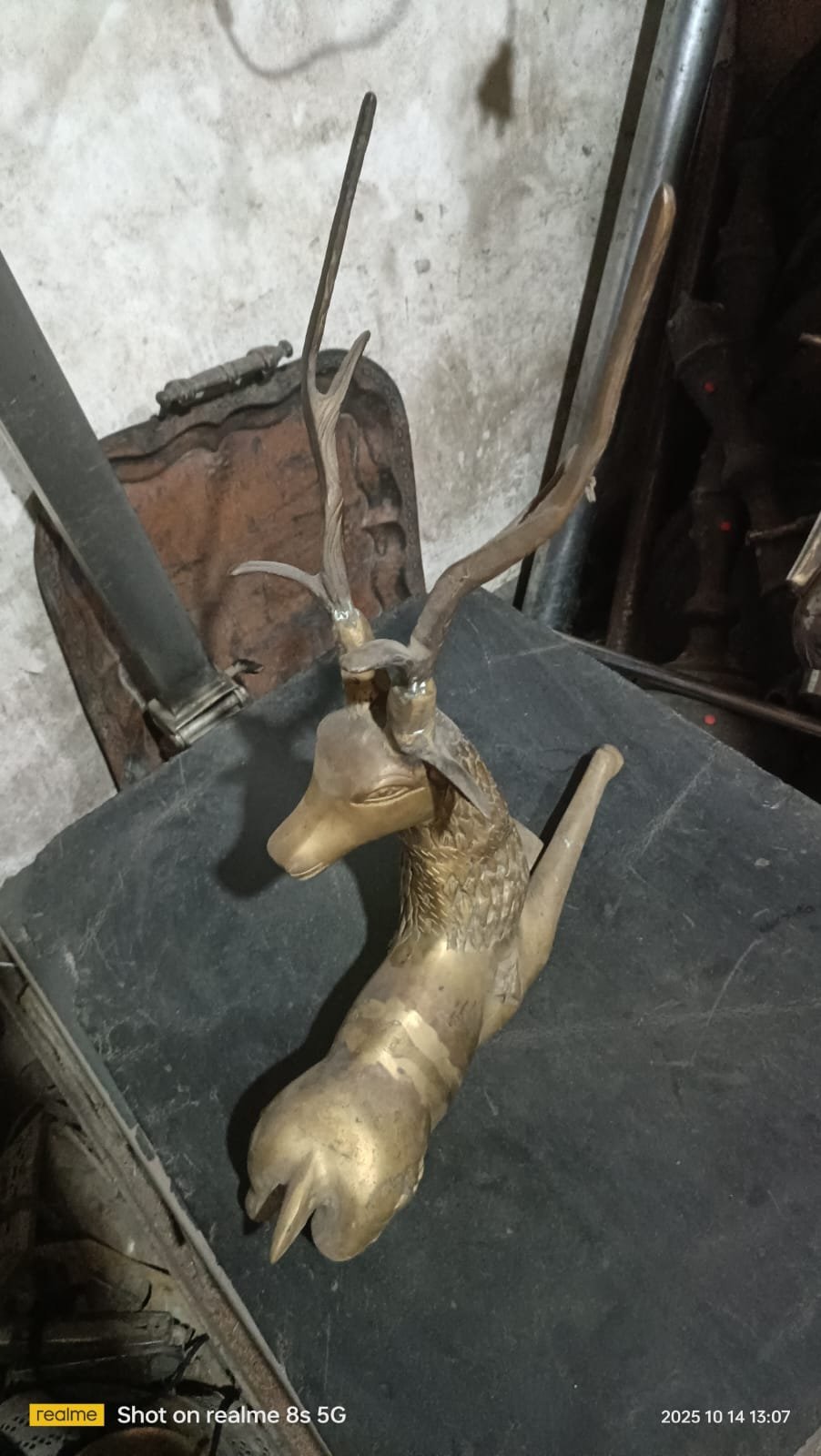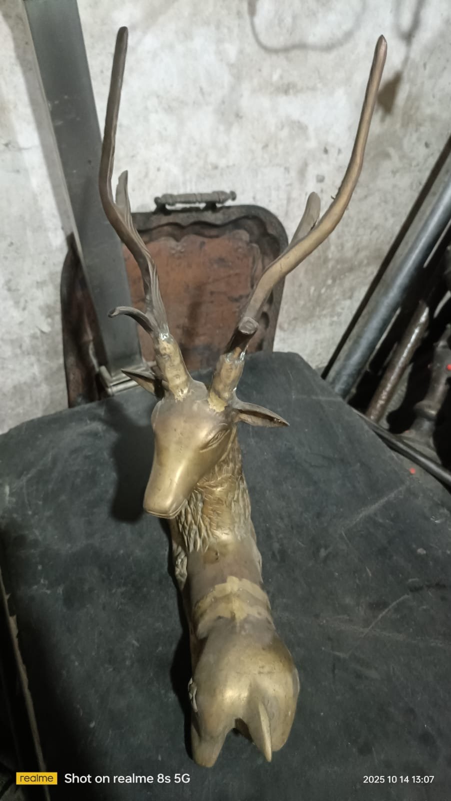 এটি একটি প্রাচীন পিতলের হরিণের ভাস্কর্য। এই ধরণের ভাস্কর্যগুলি প্রায়শই বাড়ি বা অফিসের সাজসজ্জা হিসাবে বিক্রি হয় এবং বিভিন্ন অনলাইন বাজারে পাওয়া যায়।