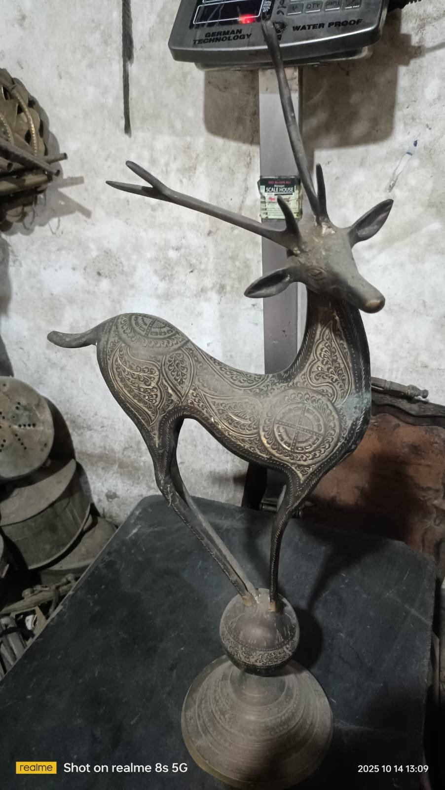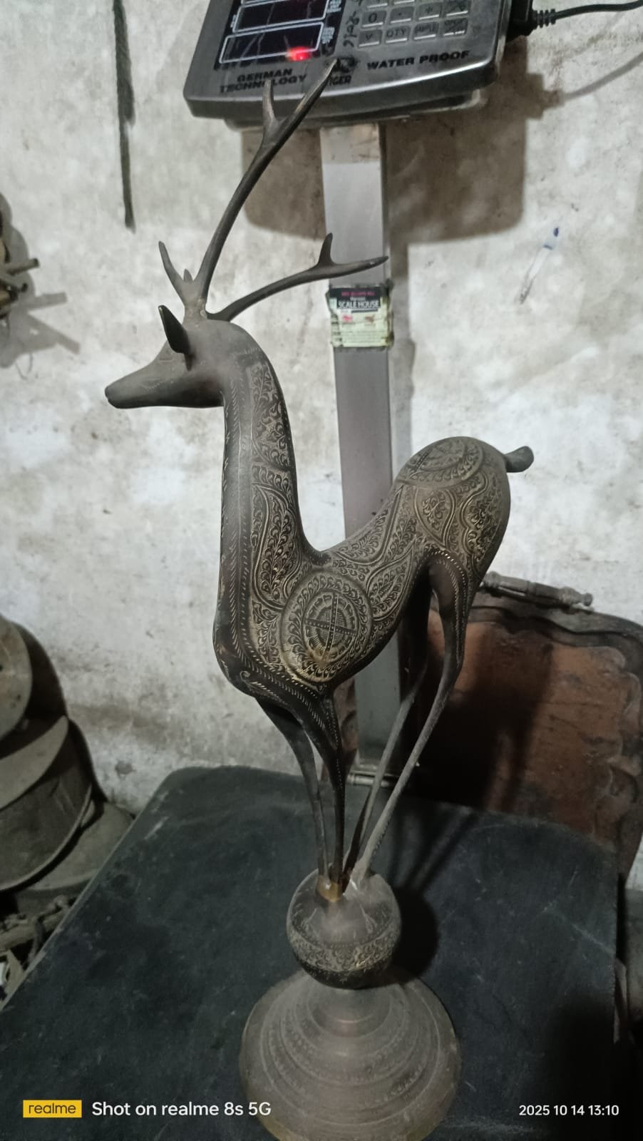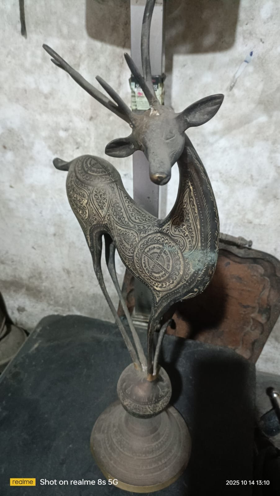 একটি প্রাচীন বা প্রাচীন সাজসজ্জার পিতলের হরিণের মূর্তি