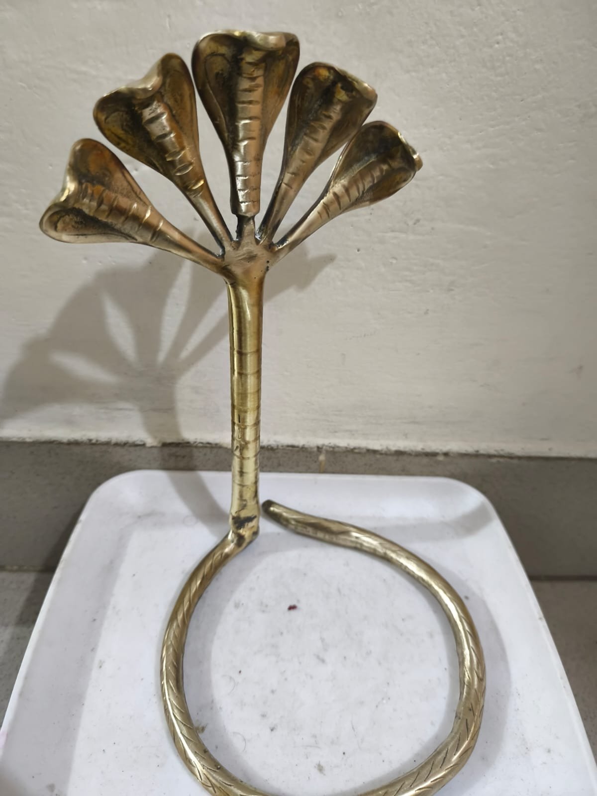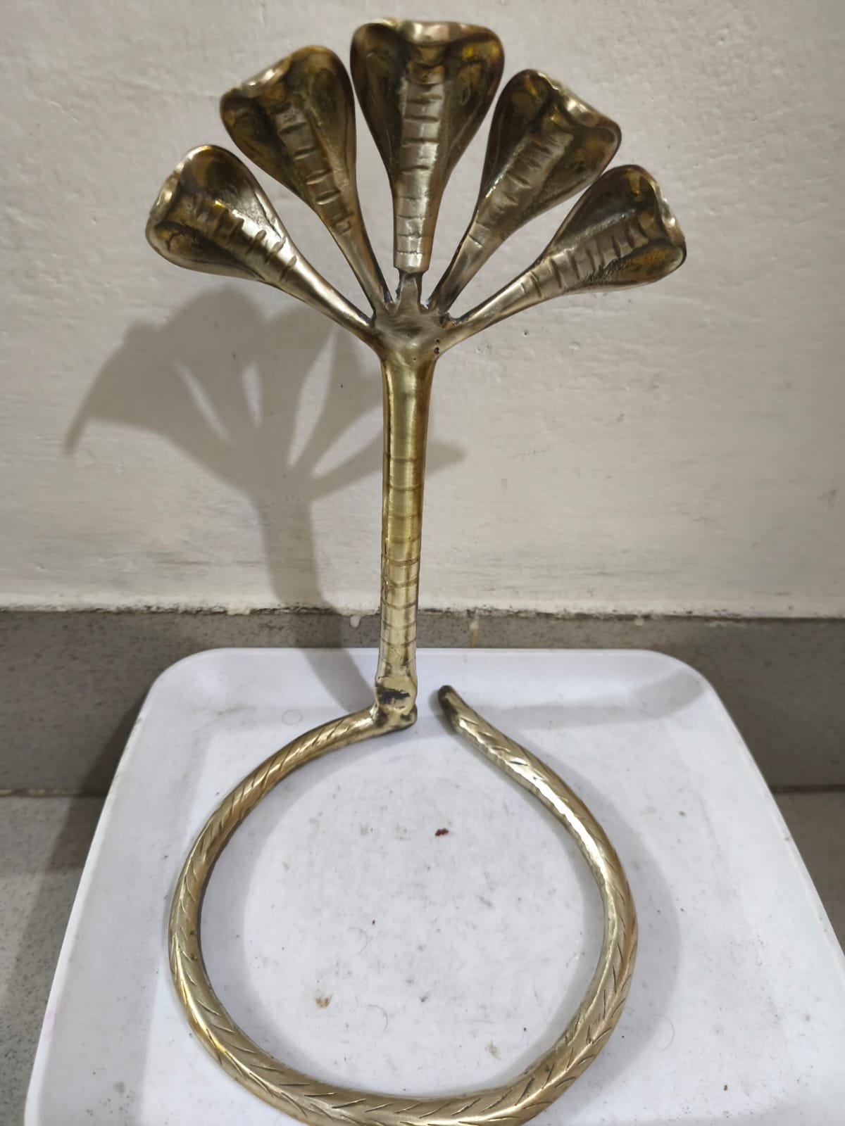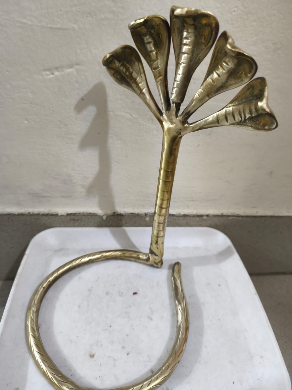এটি একটি বহুমুখী কোবরার পিতলের ভাস্কর্য, যা সাধারণত "পিতলের নাগ" বা "নাগ দেবতা" নামে পরিচিত। হিন্দু পুরাণে, নাগ (সর্প) একটি পবিত্র প্রতীক যা প্রায়শই সুরক্ষা, পুনর্জন্ম এবং অনন্তকালের সাথে যুক্ত। এটি প্রায়শই ধর্মীয় আচার-অনুষ্ঠানে ব্যবহৃত হয় এবং পূজার সময় শিবলিঙ্গের উপর স্থাপন করা হয়।
