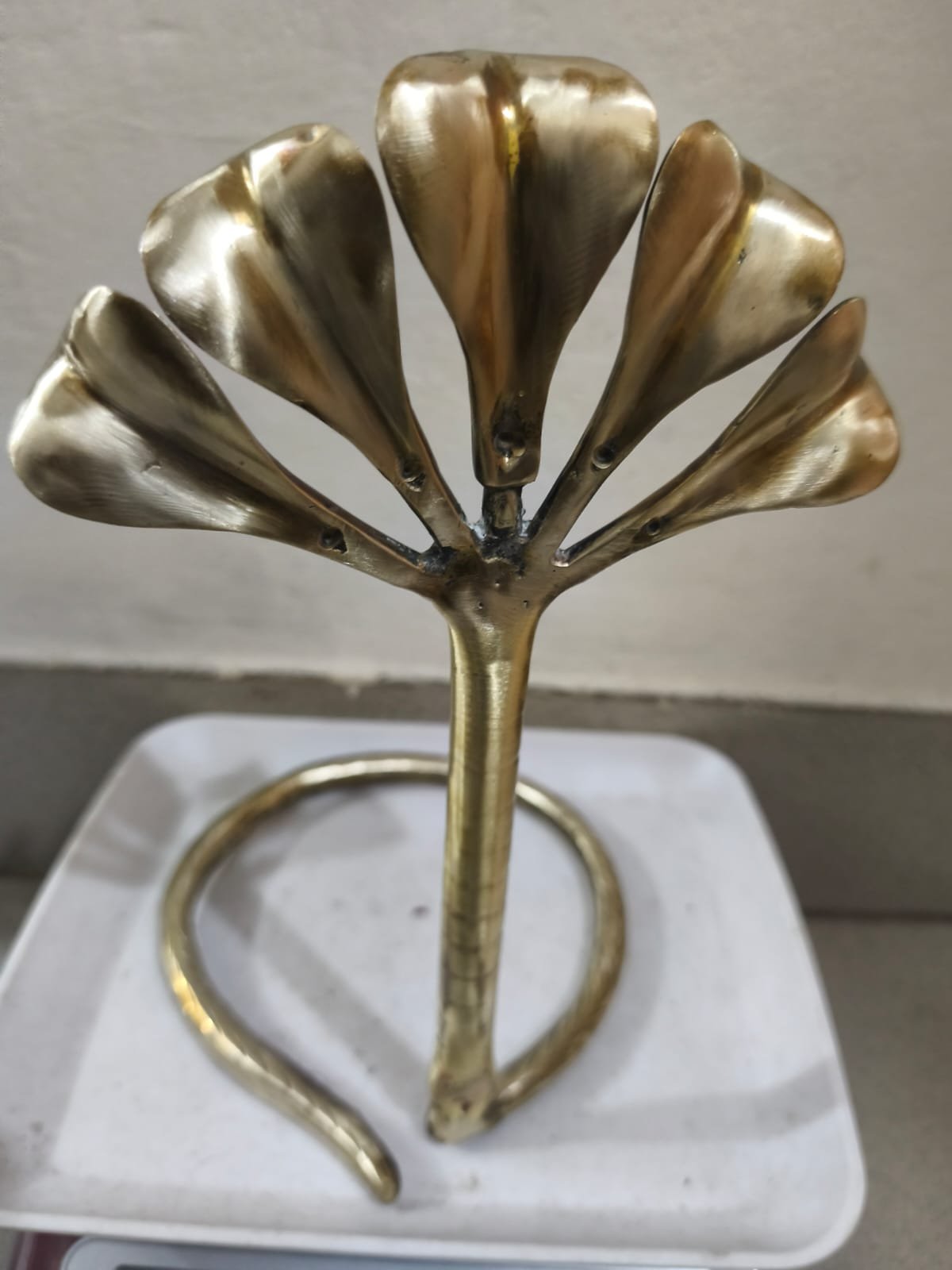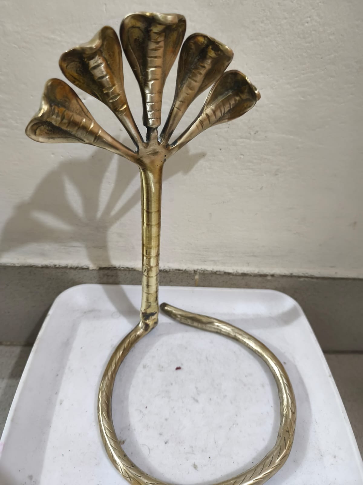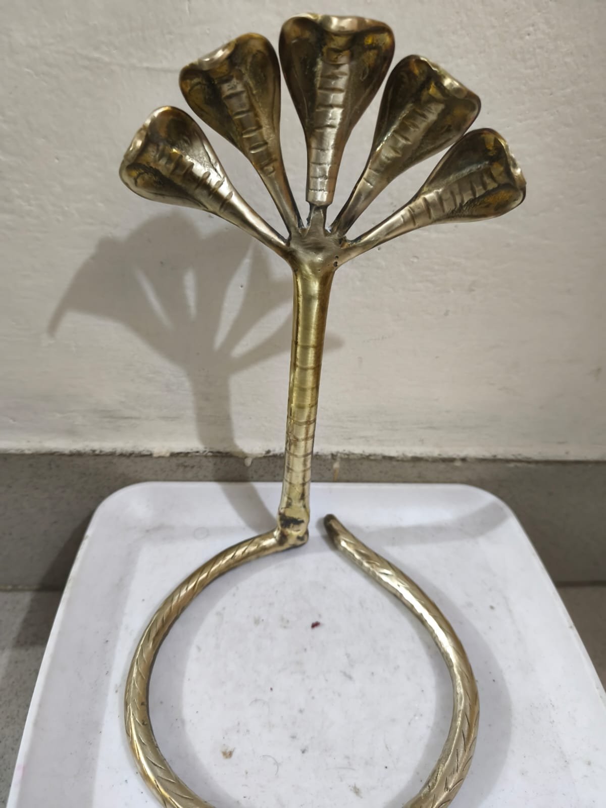 এটি একটি বহুমুখী কোবরার পিতলের ভাস্কর্য, যা সাধারণত "পিতলের নাগ" বা "নাগ দেবতা" নামে পরিচিত। হিন্দু পুরাণে, নাগ (সর্প) একটি পবিত্র প্রতীক যা প্রায়শই সুরক্ষা, পুনর্জন্ম এবং অনন্তকালের সাথে যুক্ত। এটি প্রায়শই ধর্মীয় আচার-অনুষ্ঠানে ব্যবহৃত হয় এবং পূজার সময় শিবলিঙ্গের উপর স্থাপন করা হয়।