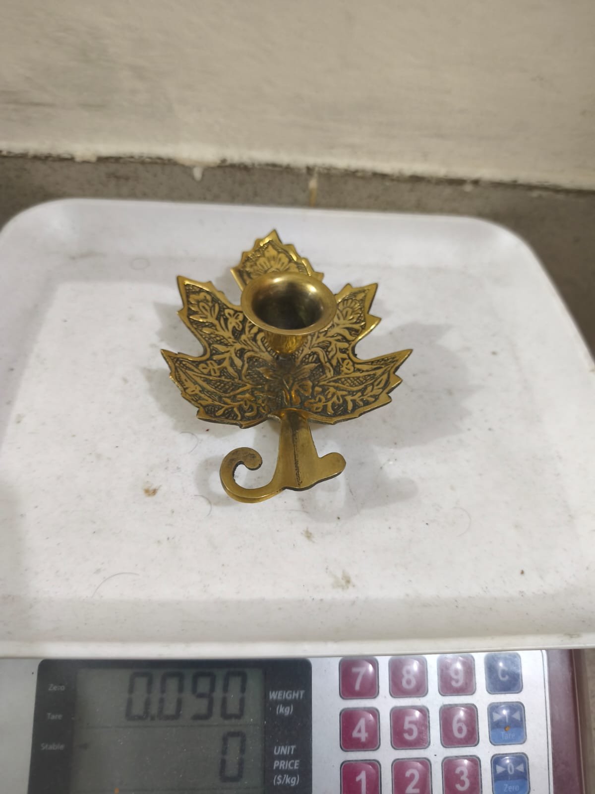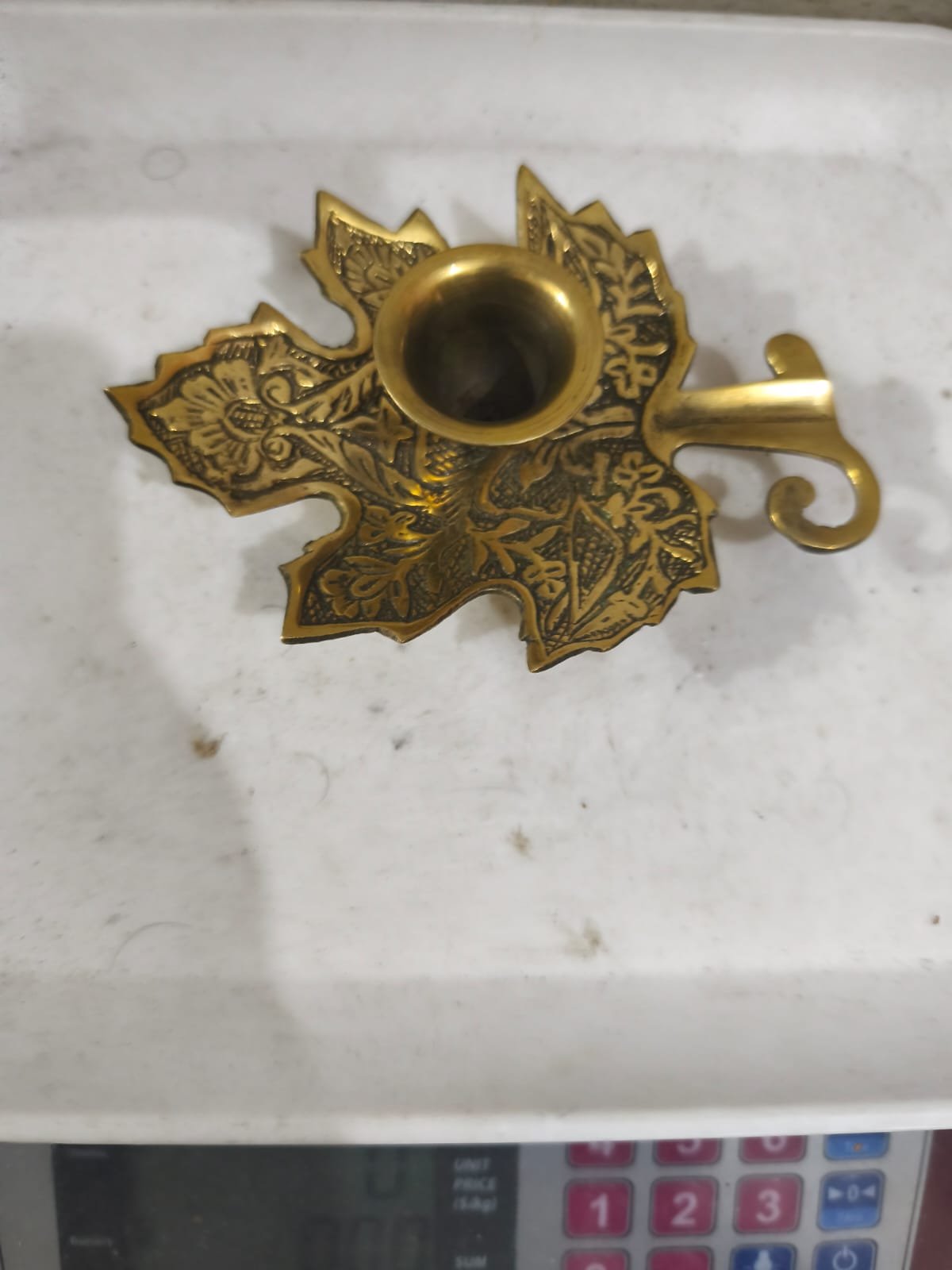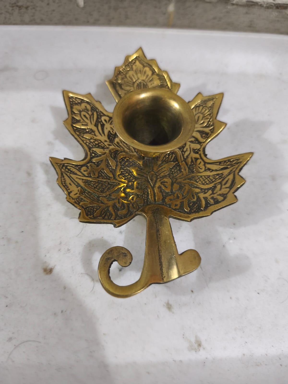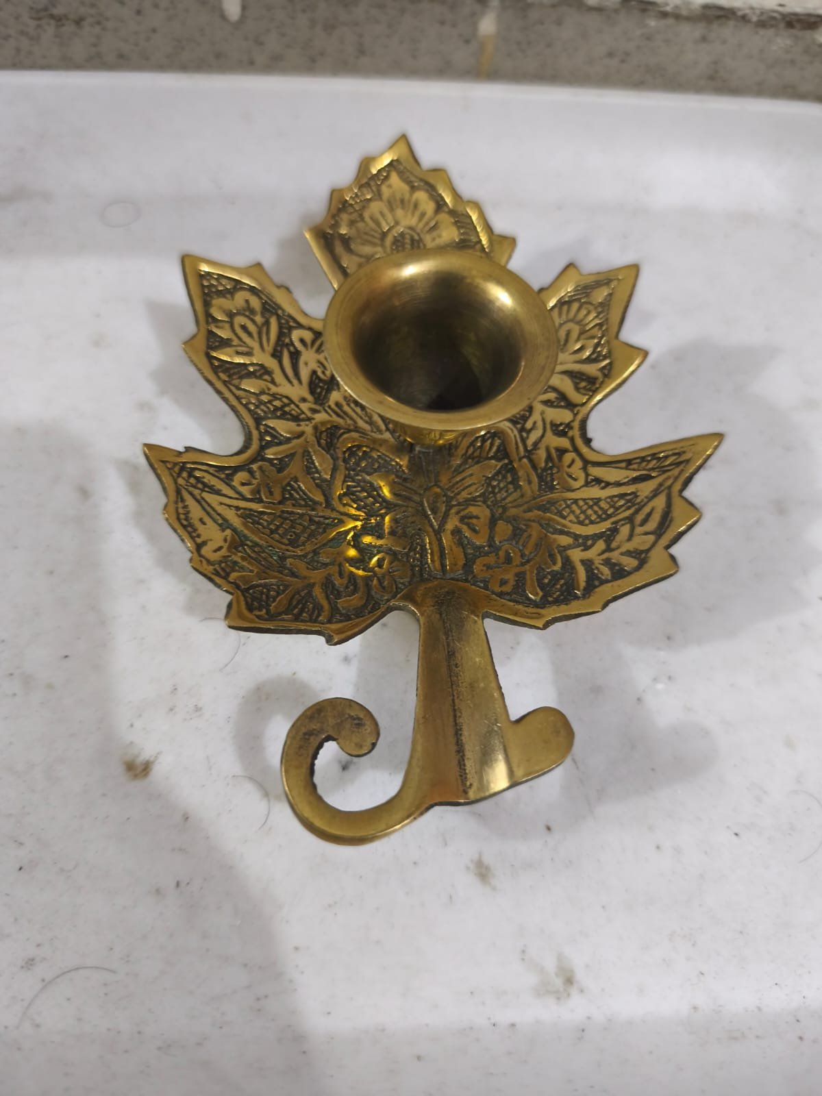 একটি ভিনটেজ পিতলের পাতার আকৃতির চেম্বার মোমবাতি ধারক