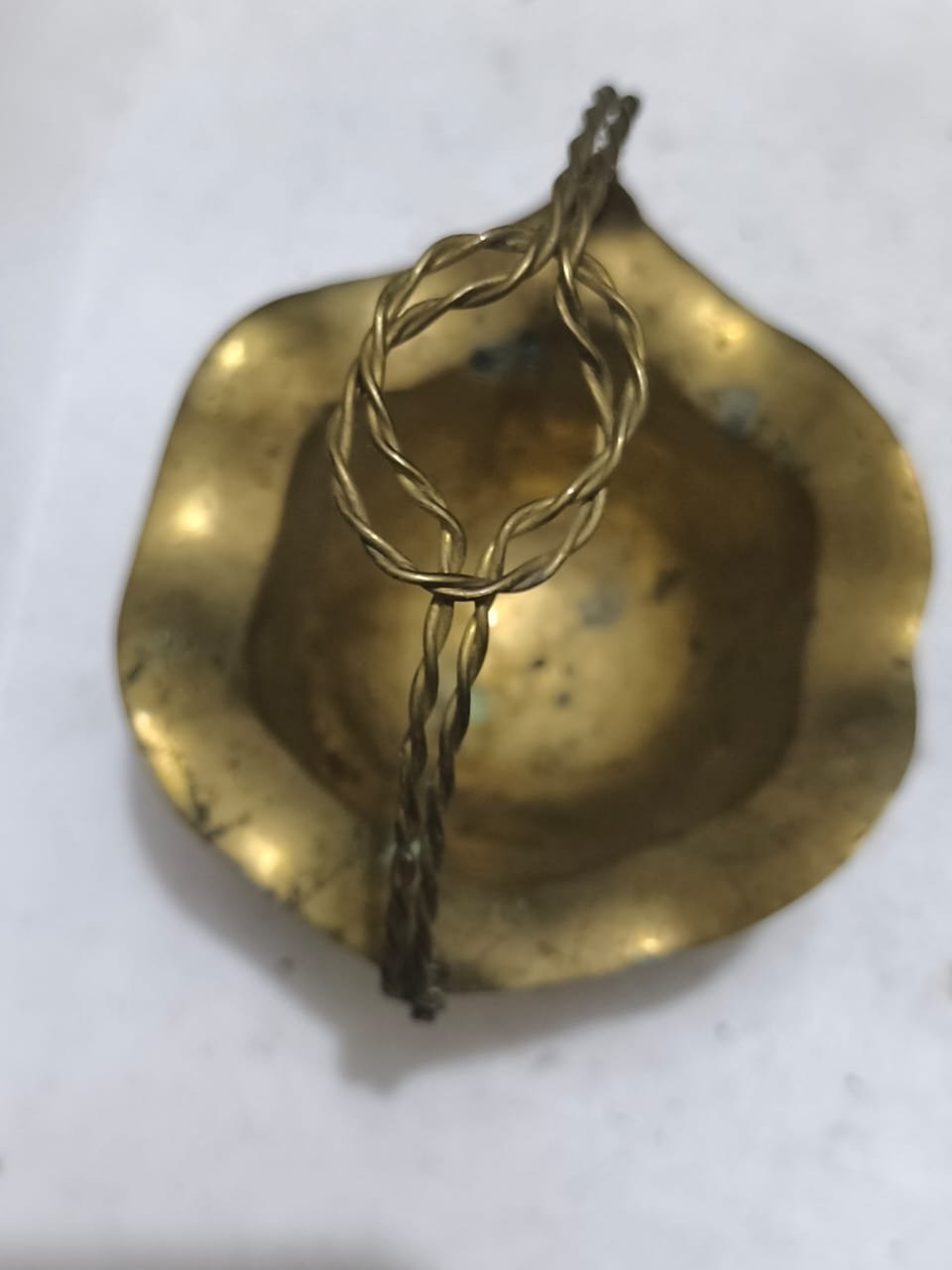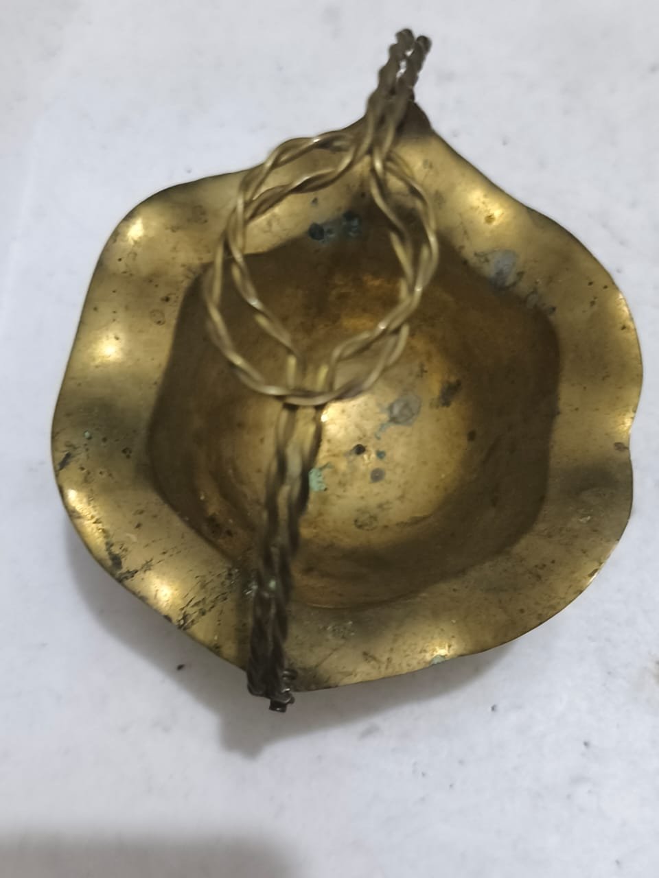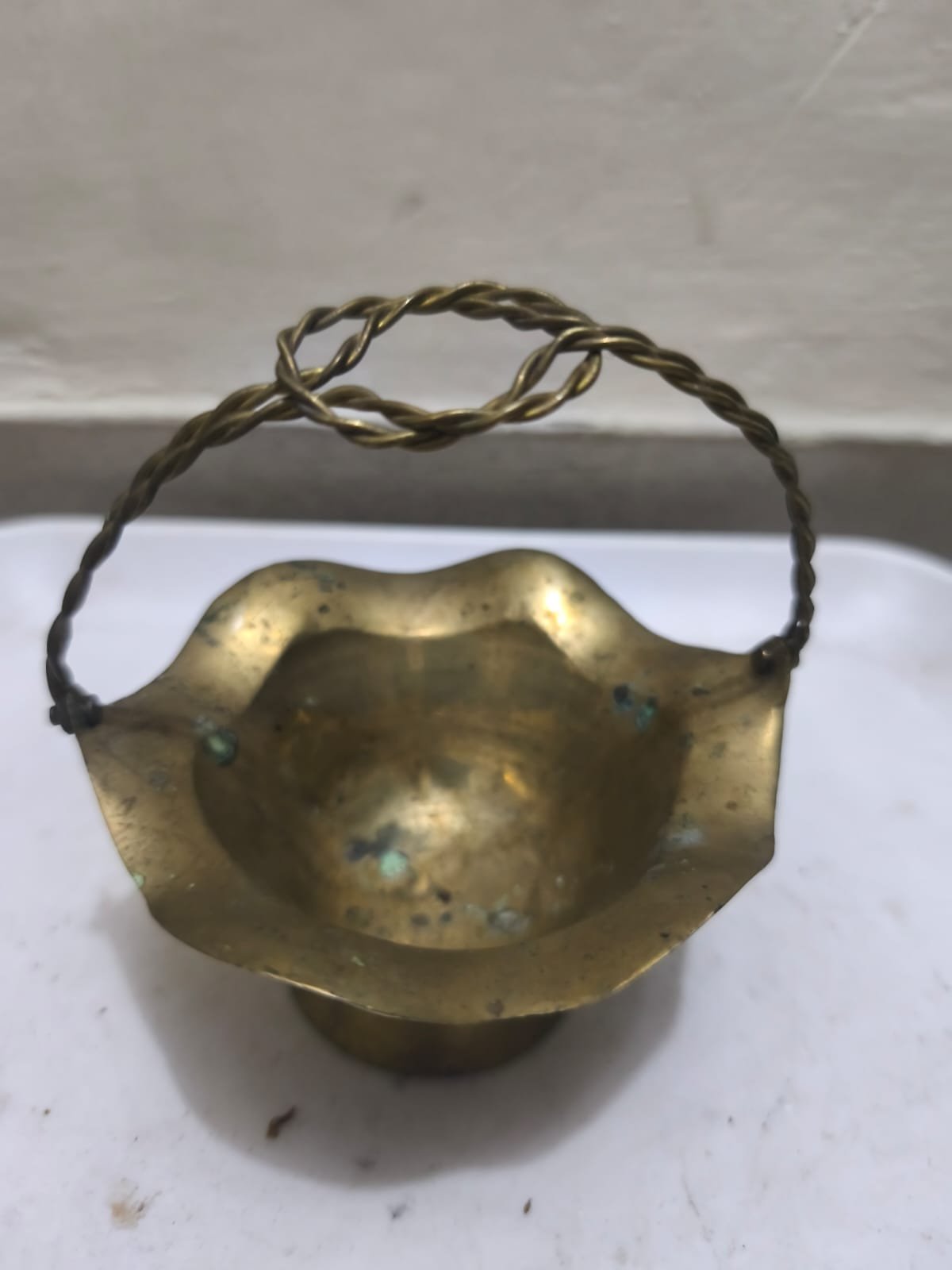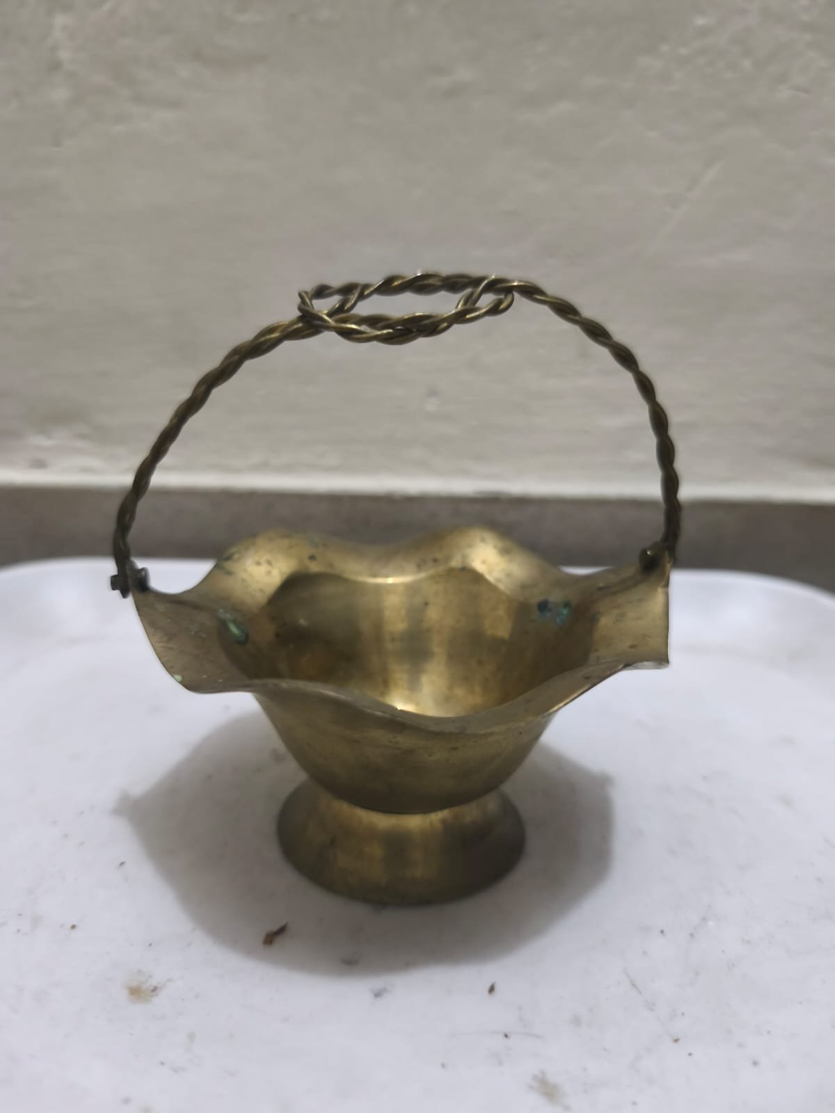 ভিনটেজ বা অ্যান্টিক পিতলের ঝুড়ি বা বাটি। এই জিনিসগুলি প্রায়শই হাতে তৈরি এবং একটি পেঁচানো বা দড়ির মতো হাতল থাকে।