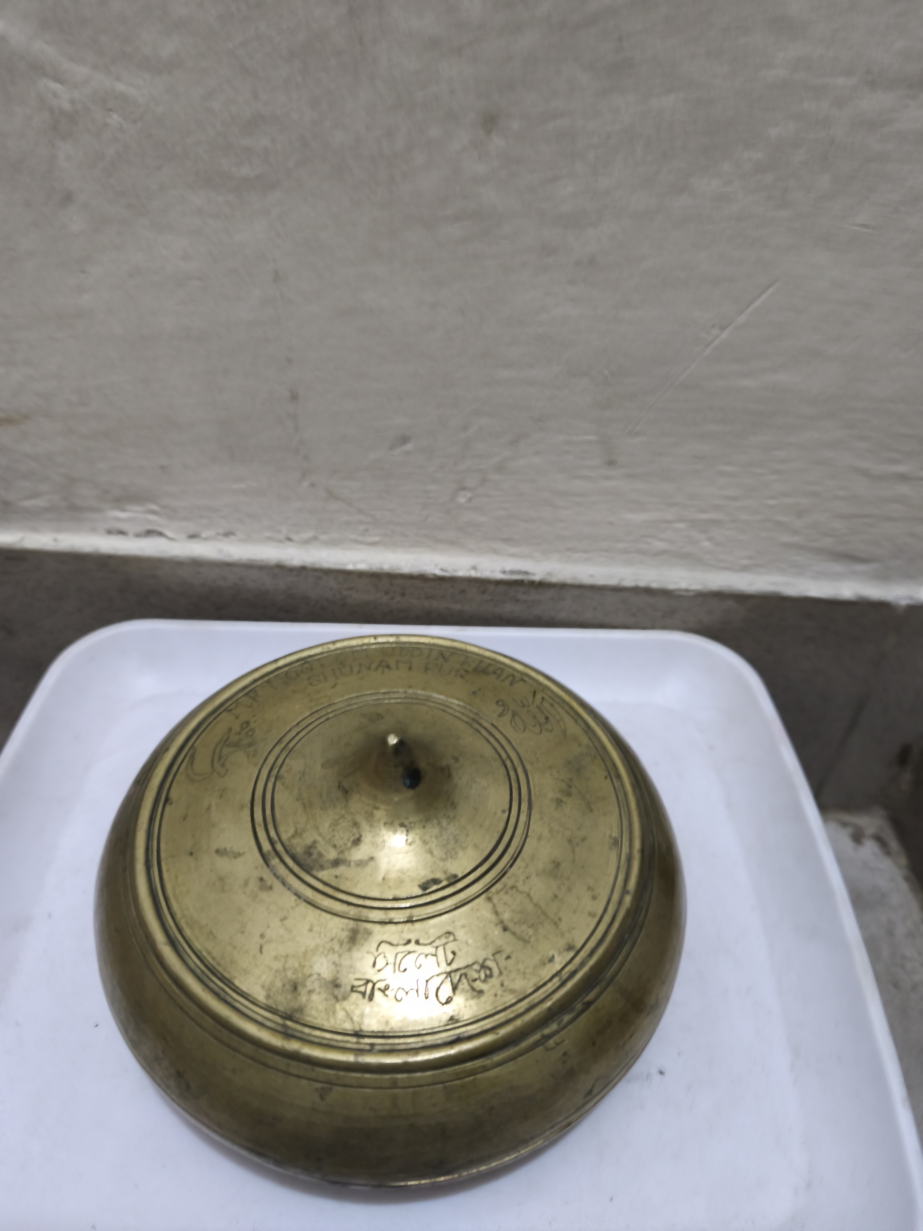 - খোদাই করা: ঢাকনা লেখা আছে "মিস্টার মোসলম। উদ্দিন খান শুনাম পুর"।