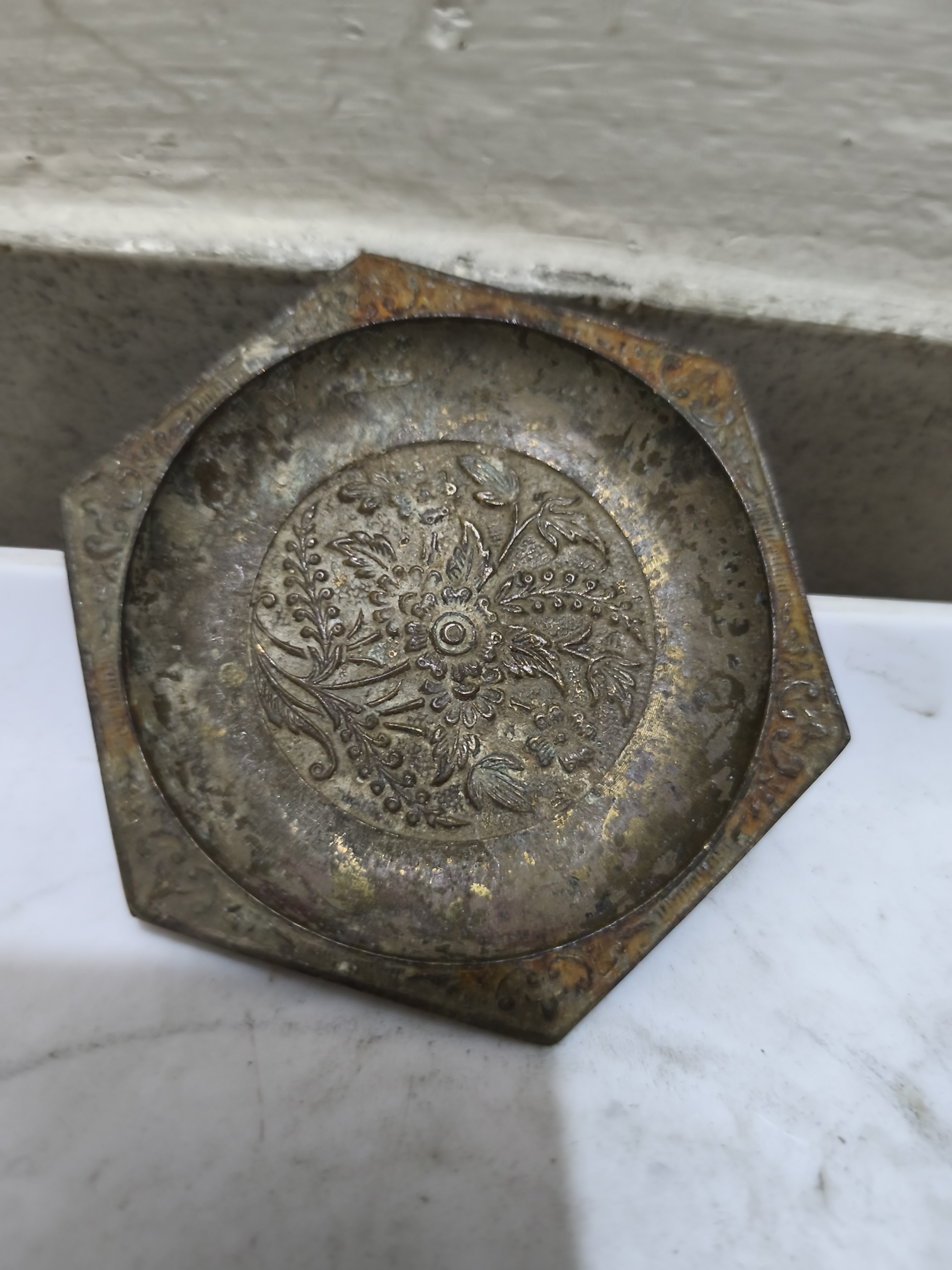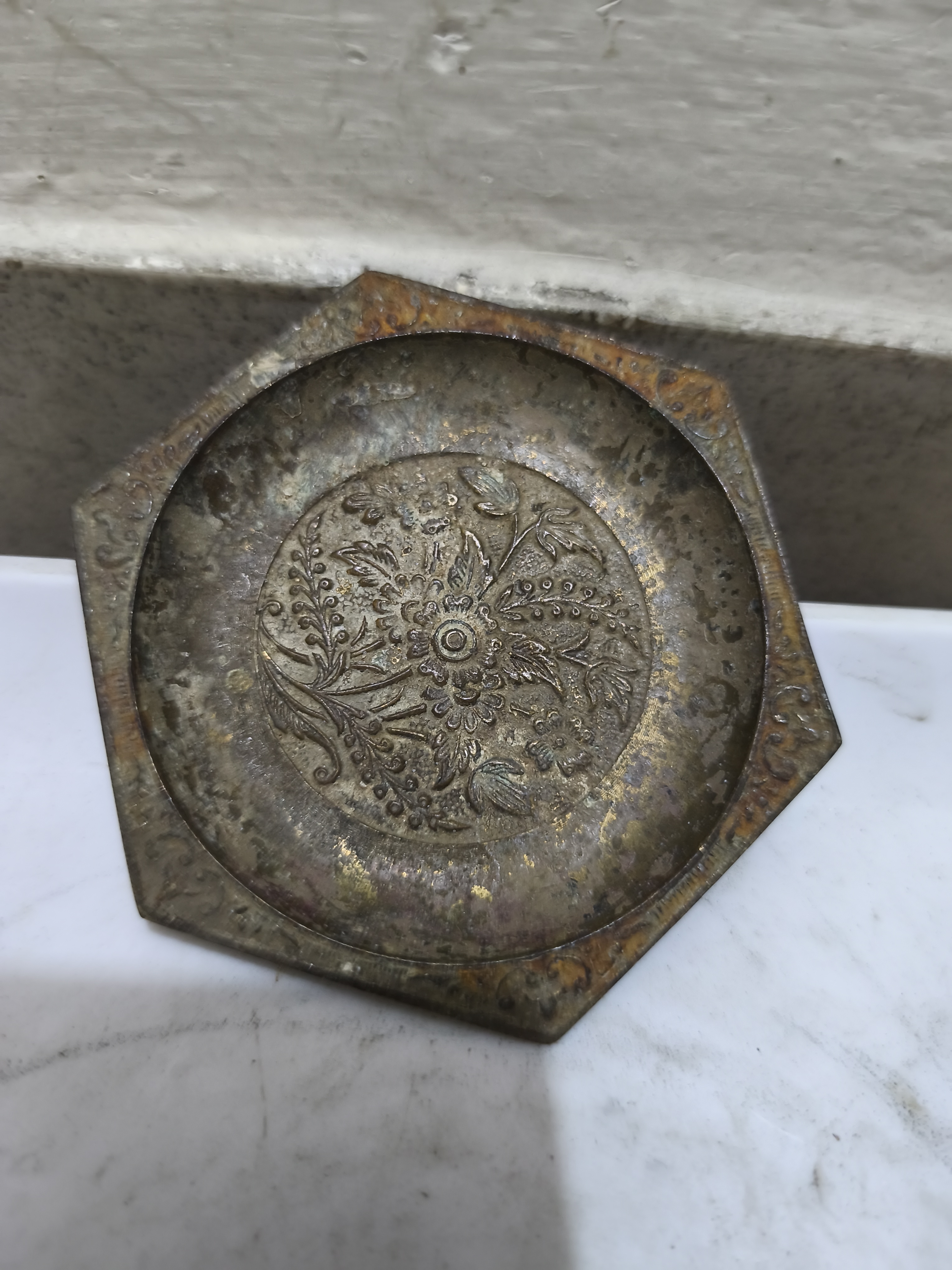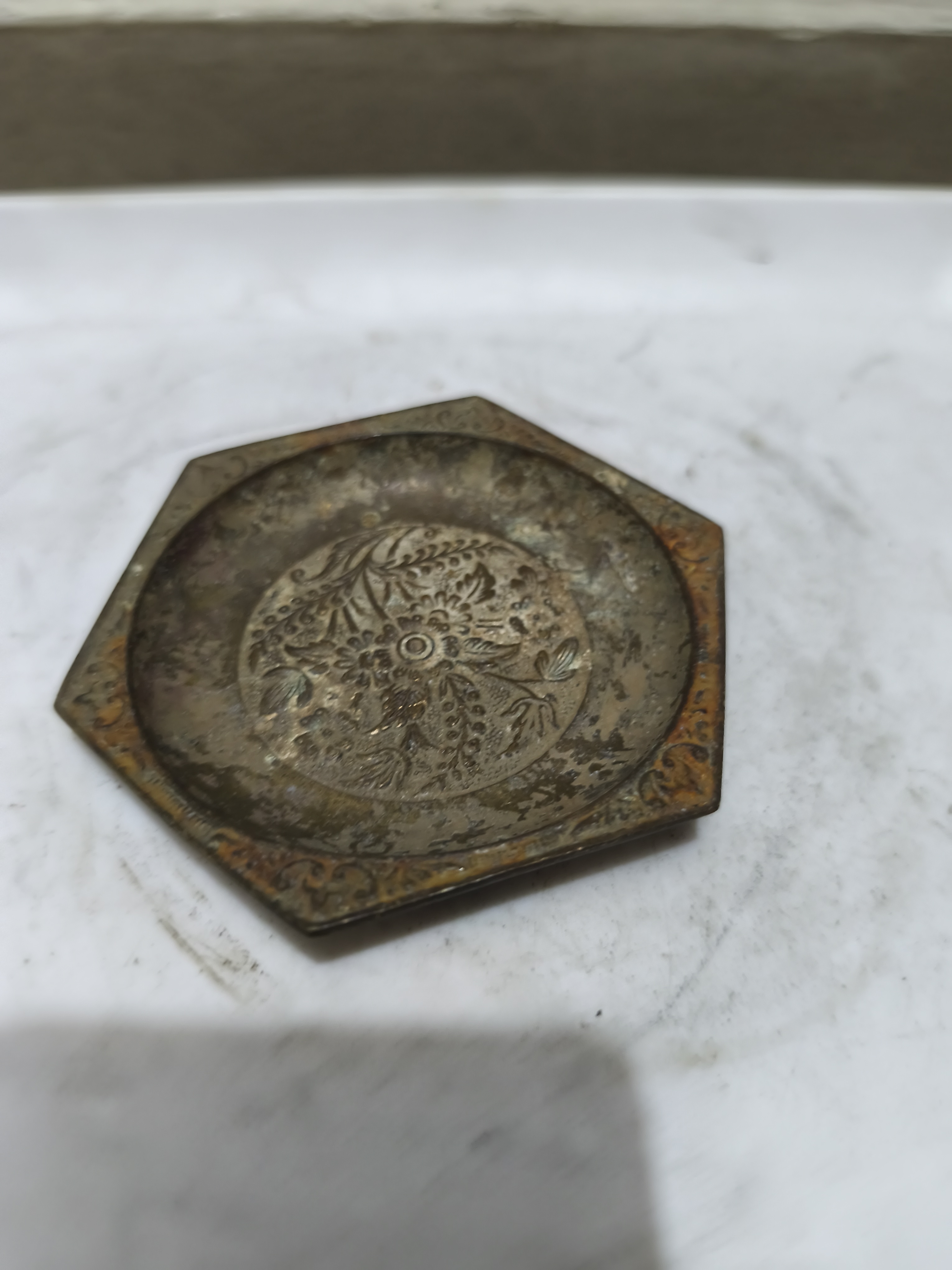 - নকশা: কেন্দ্রে জটিল এমবসড বা খোদিত ফুলের মোটিফ এবং আলংকারিক বর্ডার।