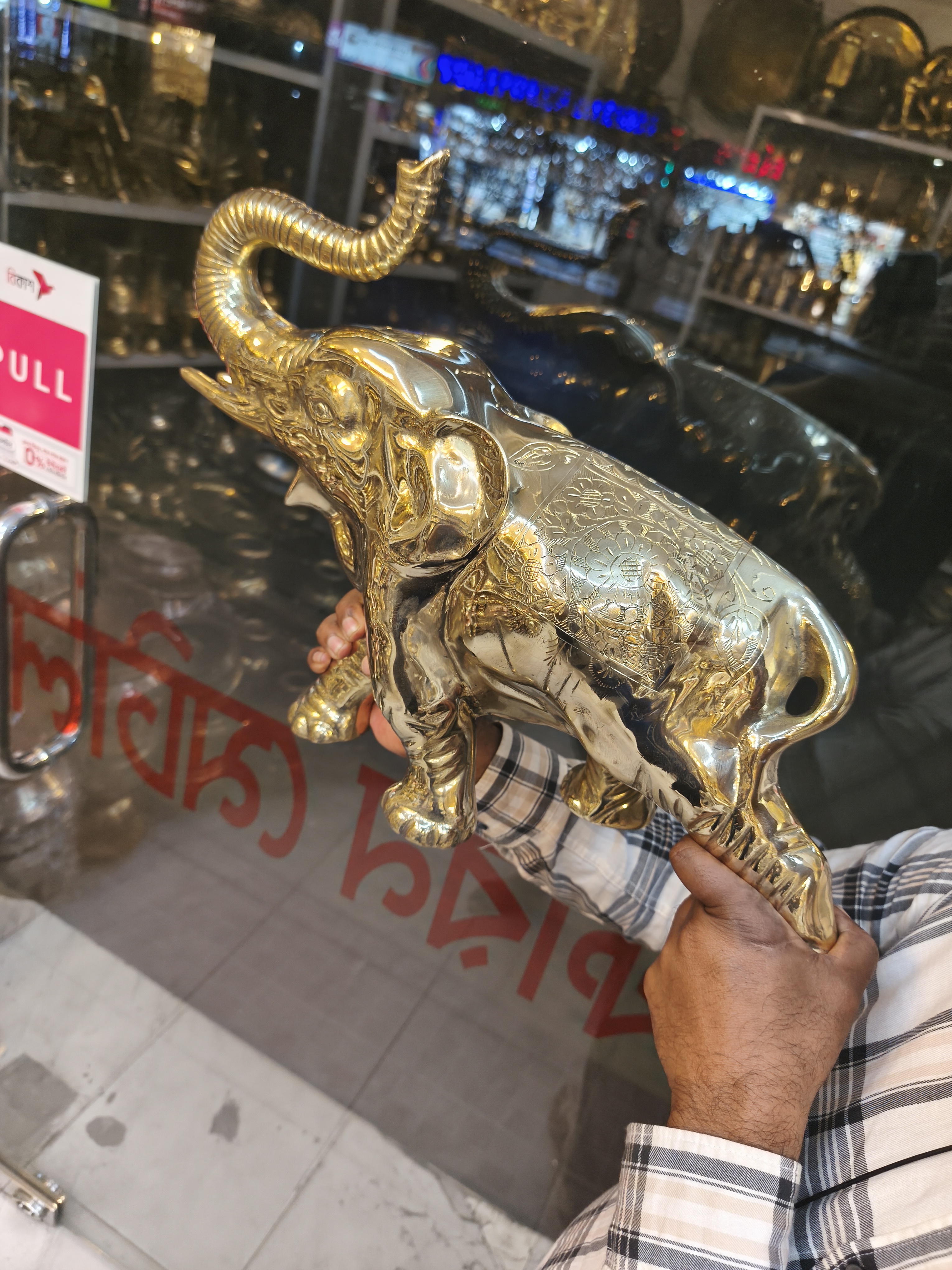 মসৃণ ও চকচকে পৃষ্ঠে আলো পড়লে যে উষ্ণ সোনালি আভা ছড়িয়ে পড়ে, তা পরিবেশকে করে তোলে আরও আভিজাত্যময়। এই পিতলের হাতিটি শুধু একটি শো-পিস নয়—এ যেন ঐতিহ্য, সংস্কৃতি ও সৌন্দর্যের এক অনন্য মিলন, যা ঘর কিংবা অফিসের সাজে এনে দেয় মর্যাদা ও শুভ শক্তির