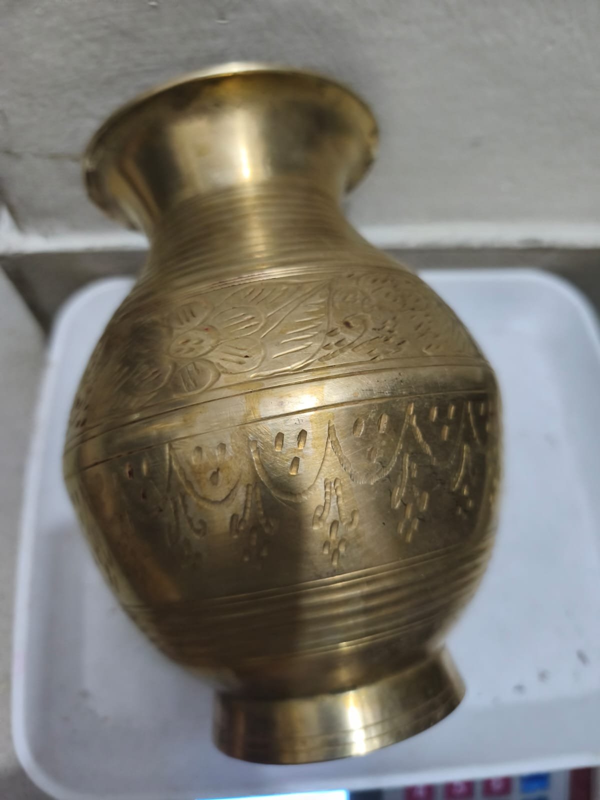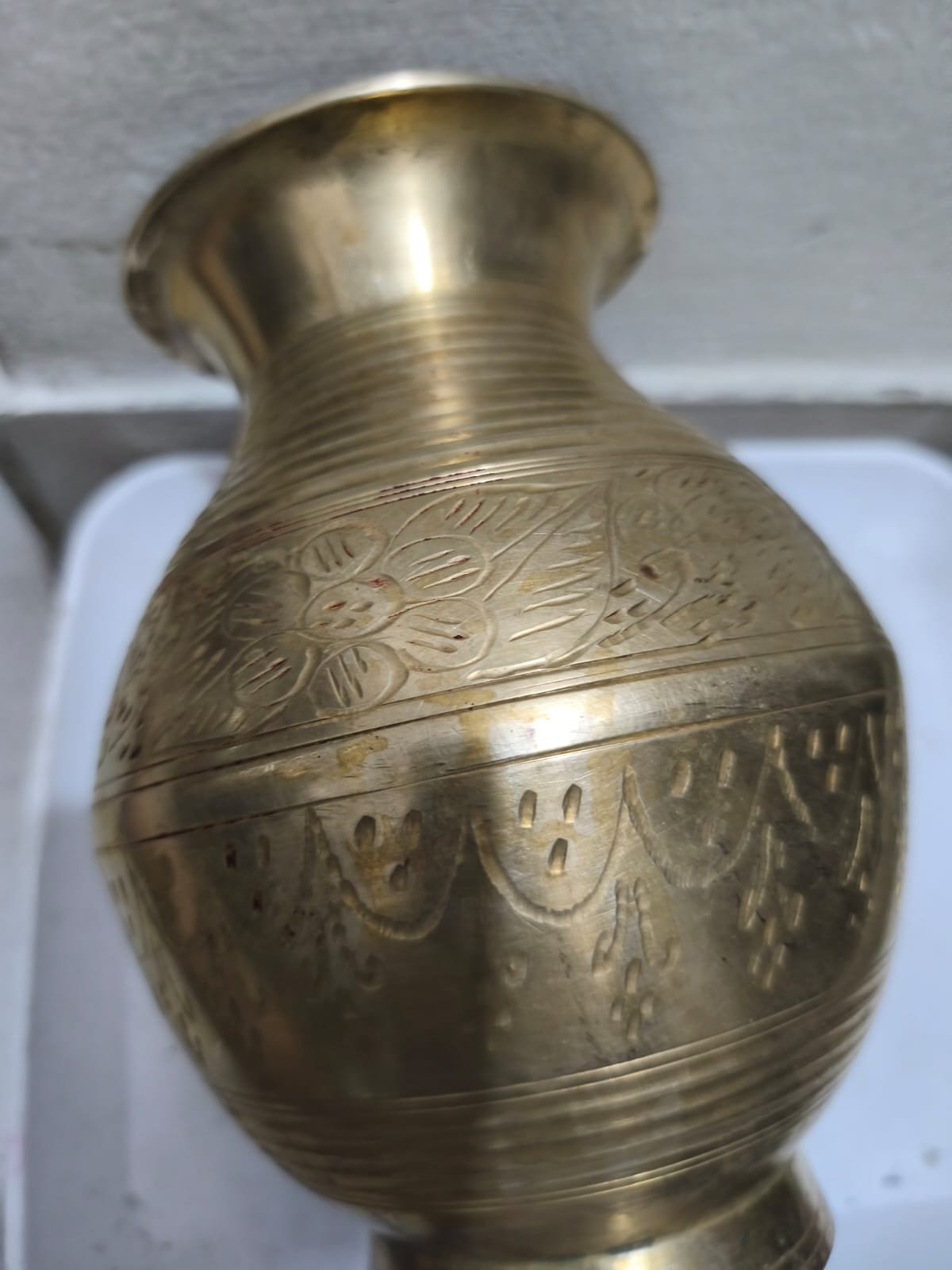 একটি সুন্দর খোদাইকরা পিতলের কলস বা ঘড়া