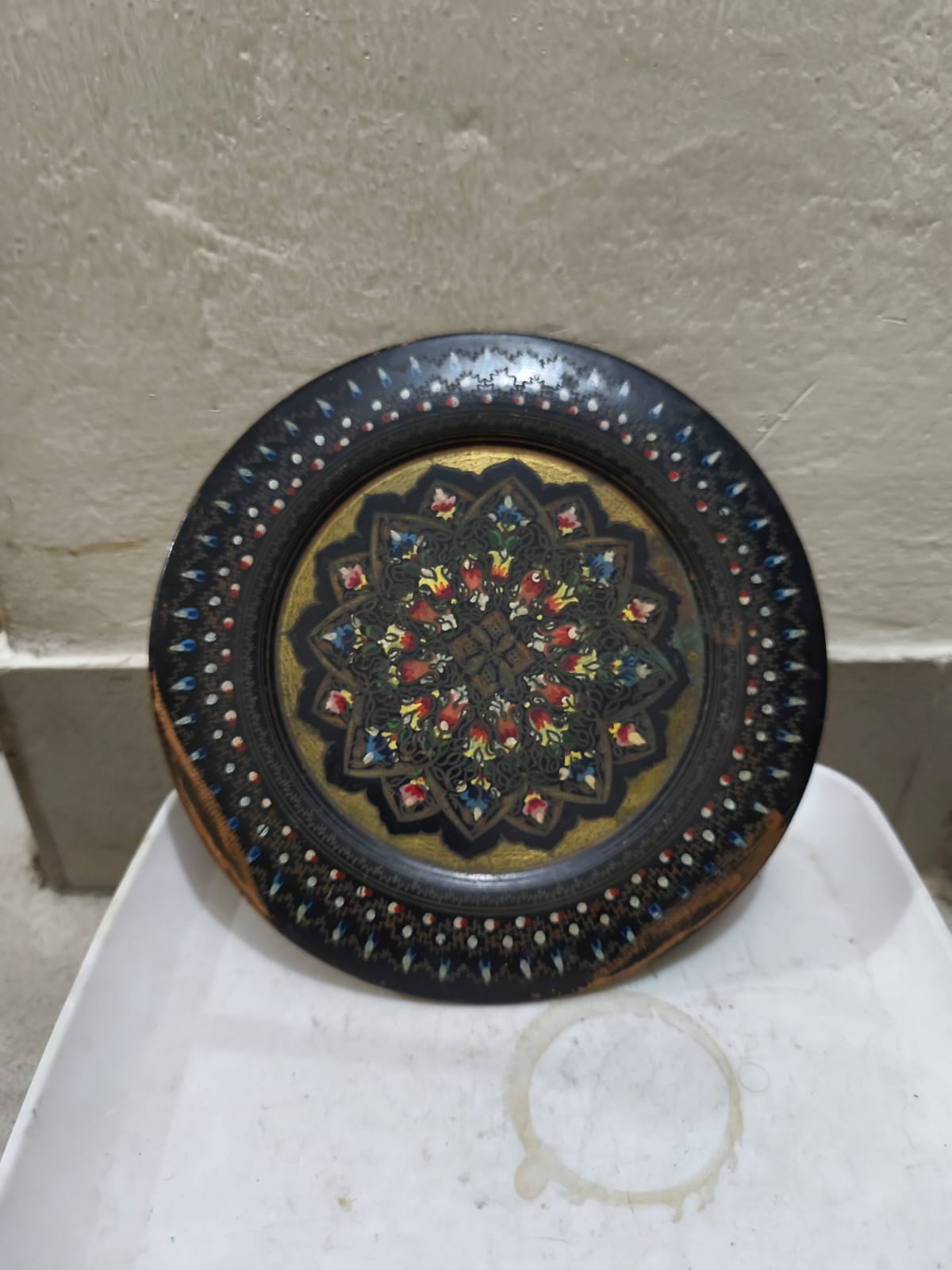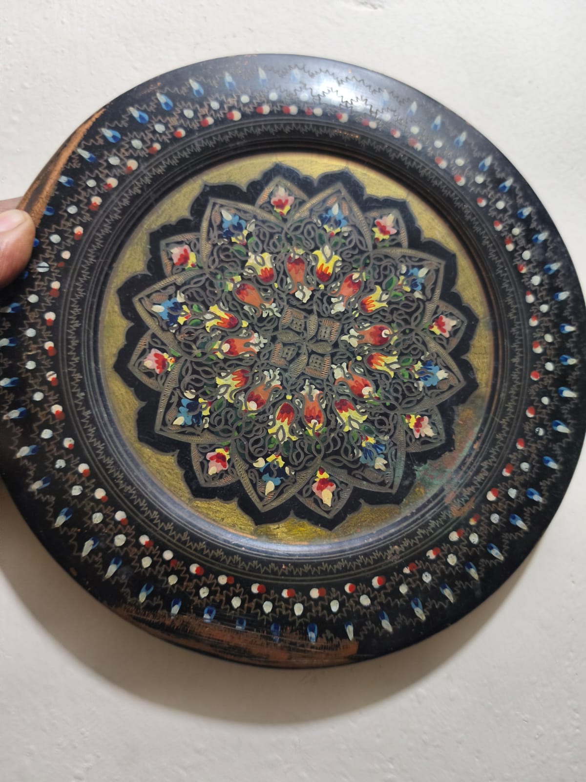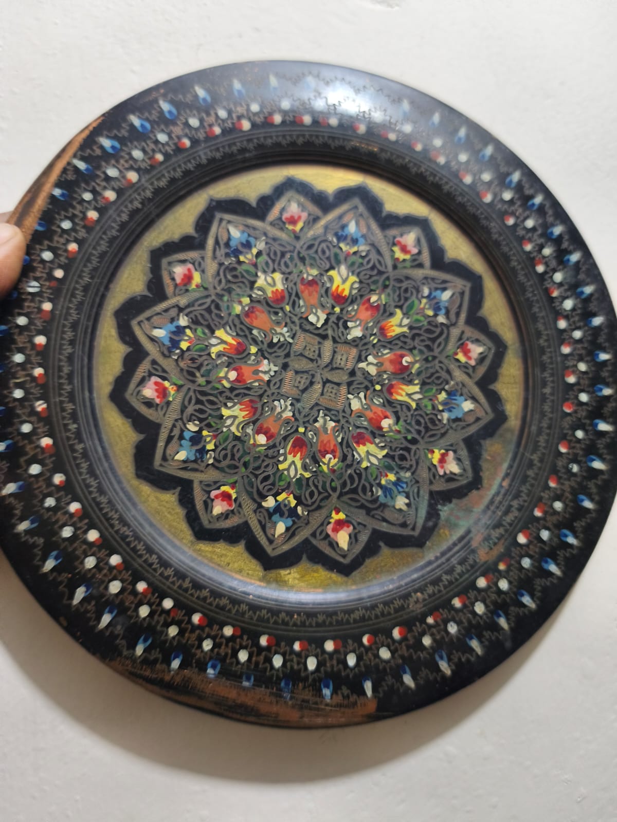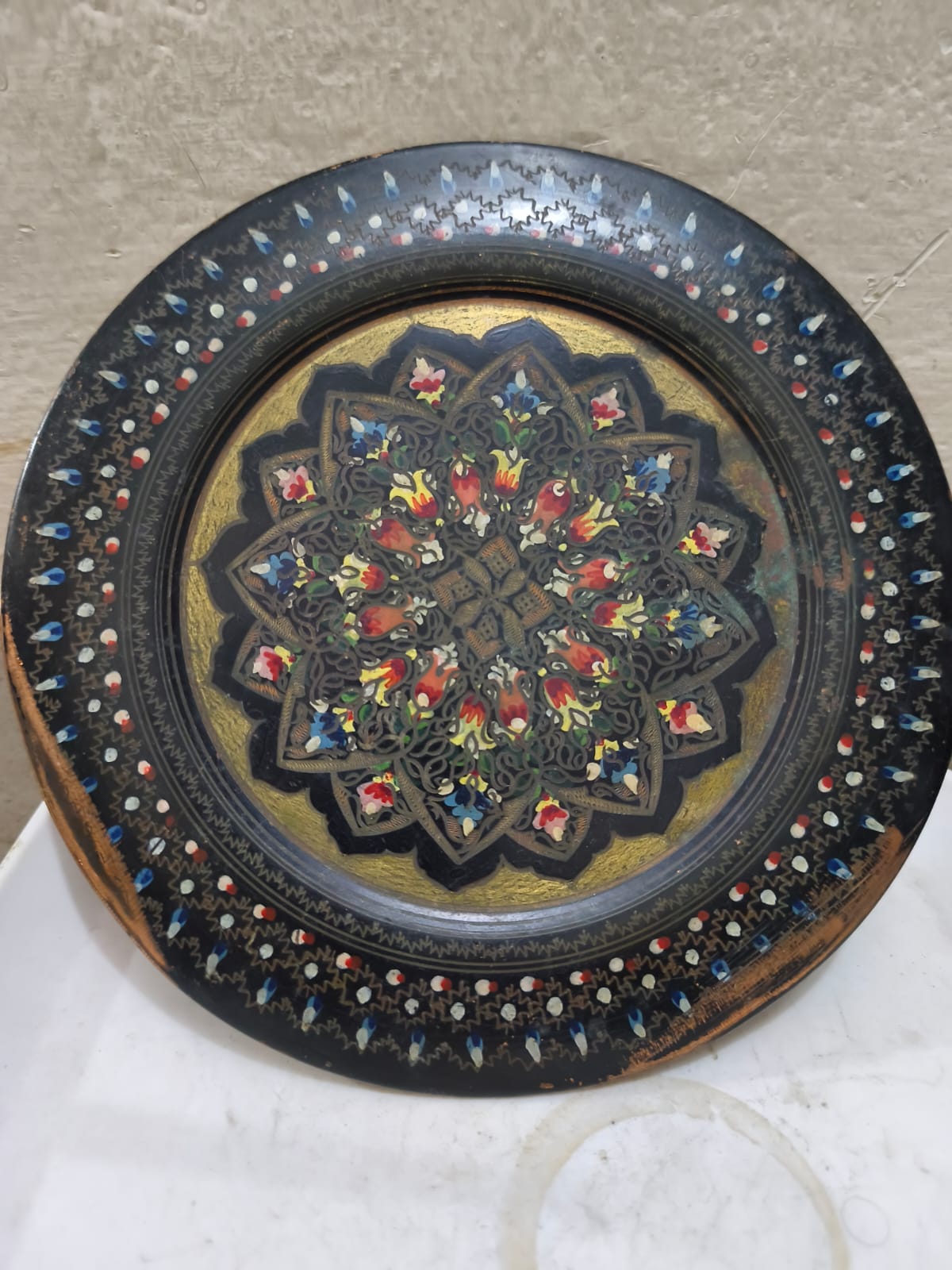 একটি হাতে খোদাই করা এবং আঁকা তামার থালা বা ট্রে