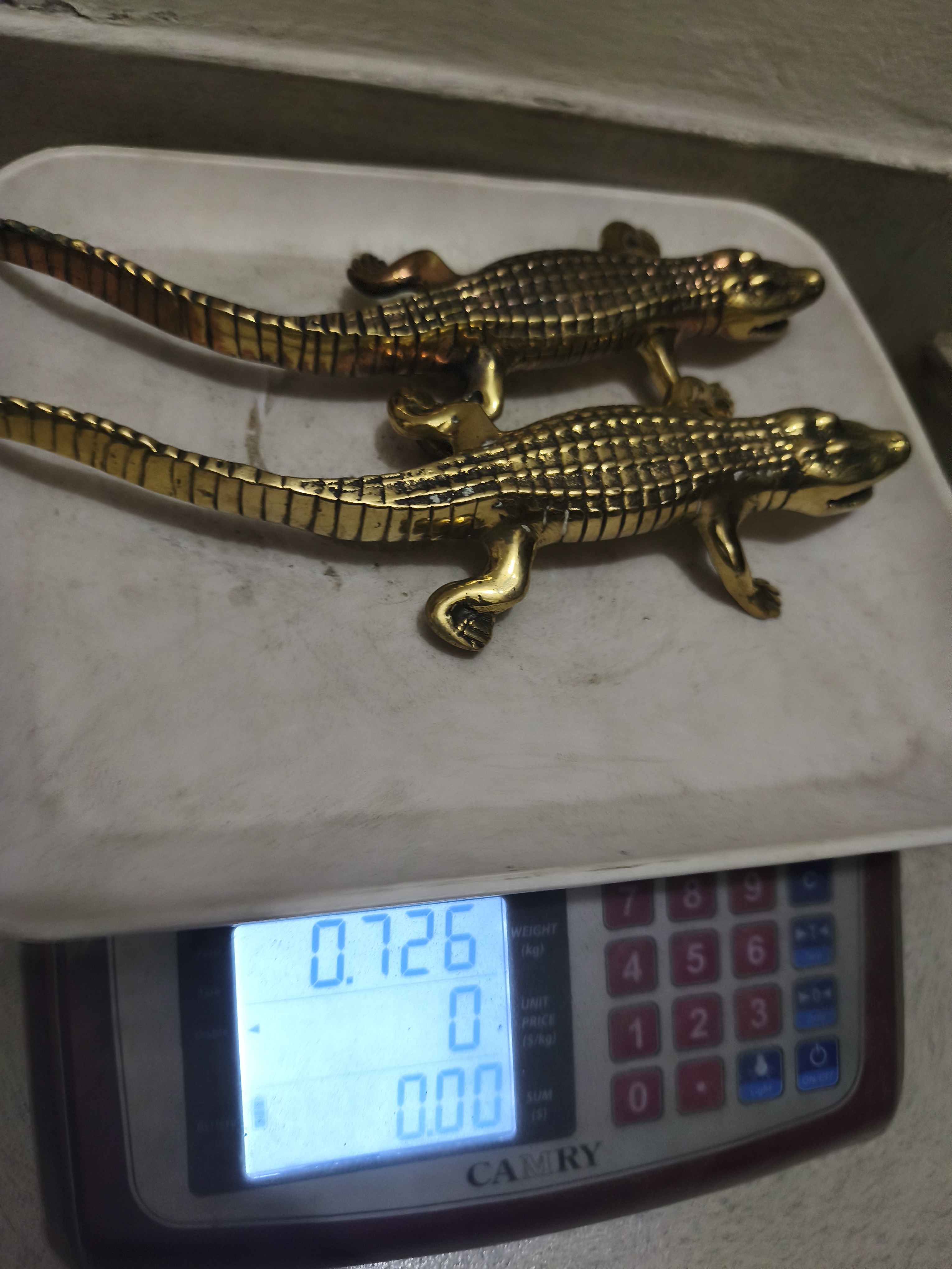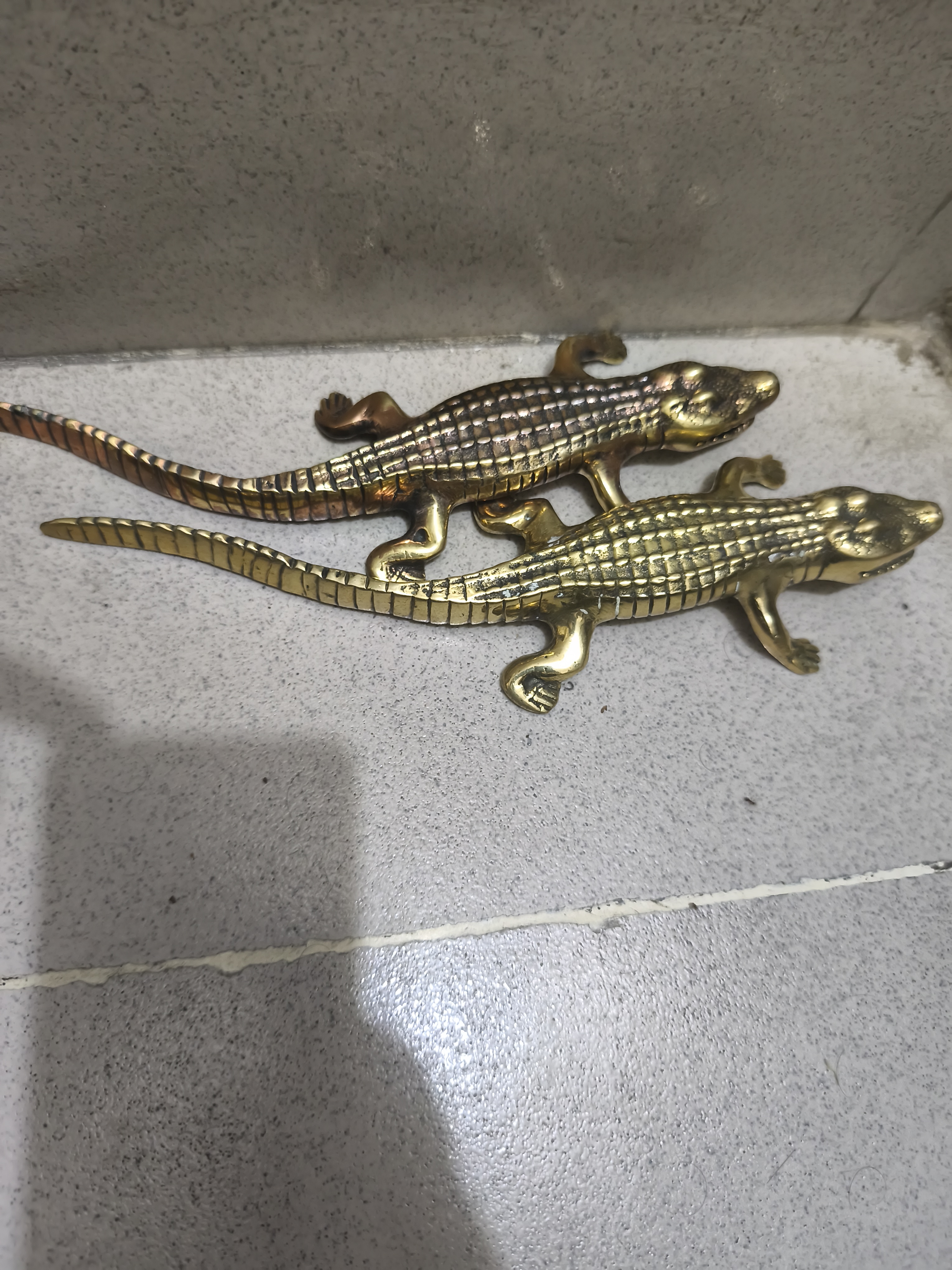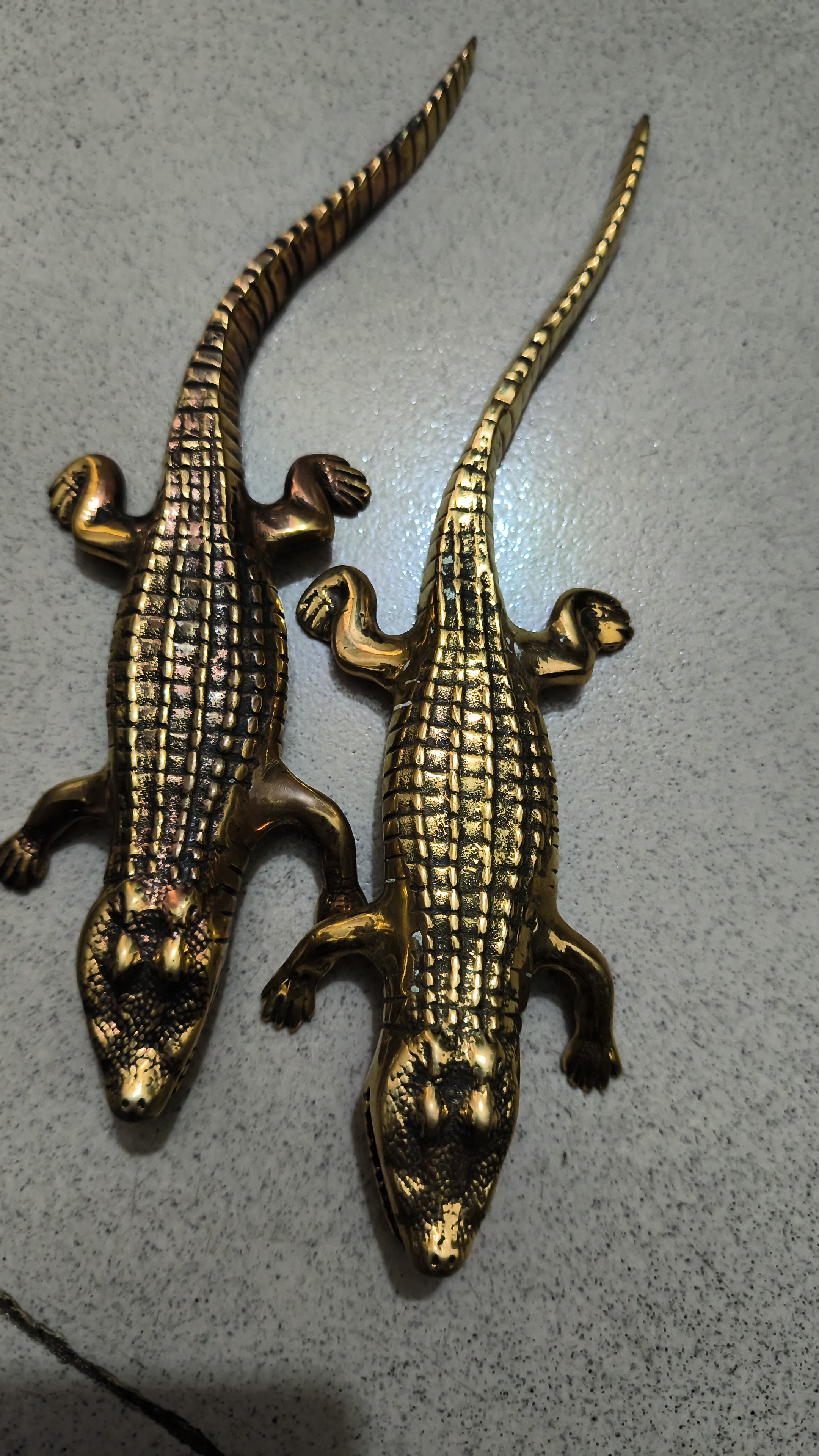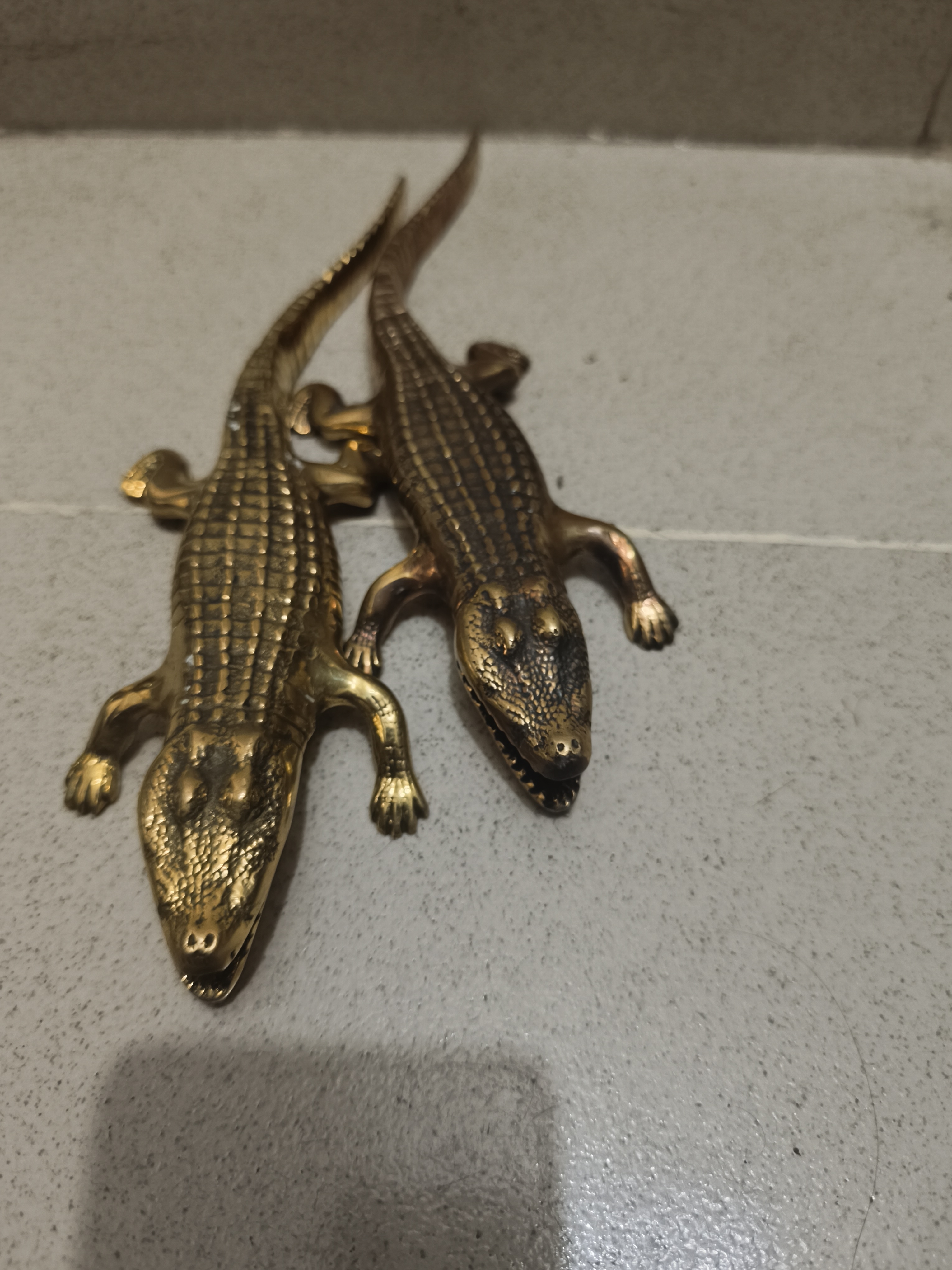 এক জোড়া ভিন্টেজ পিতলের তৈরি কুমিরের ক্ষুদ্র মূর্তি