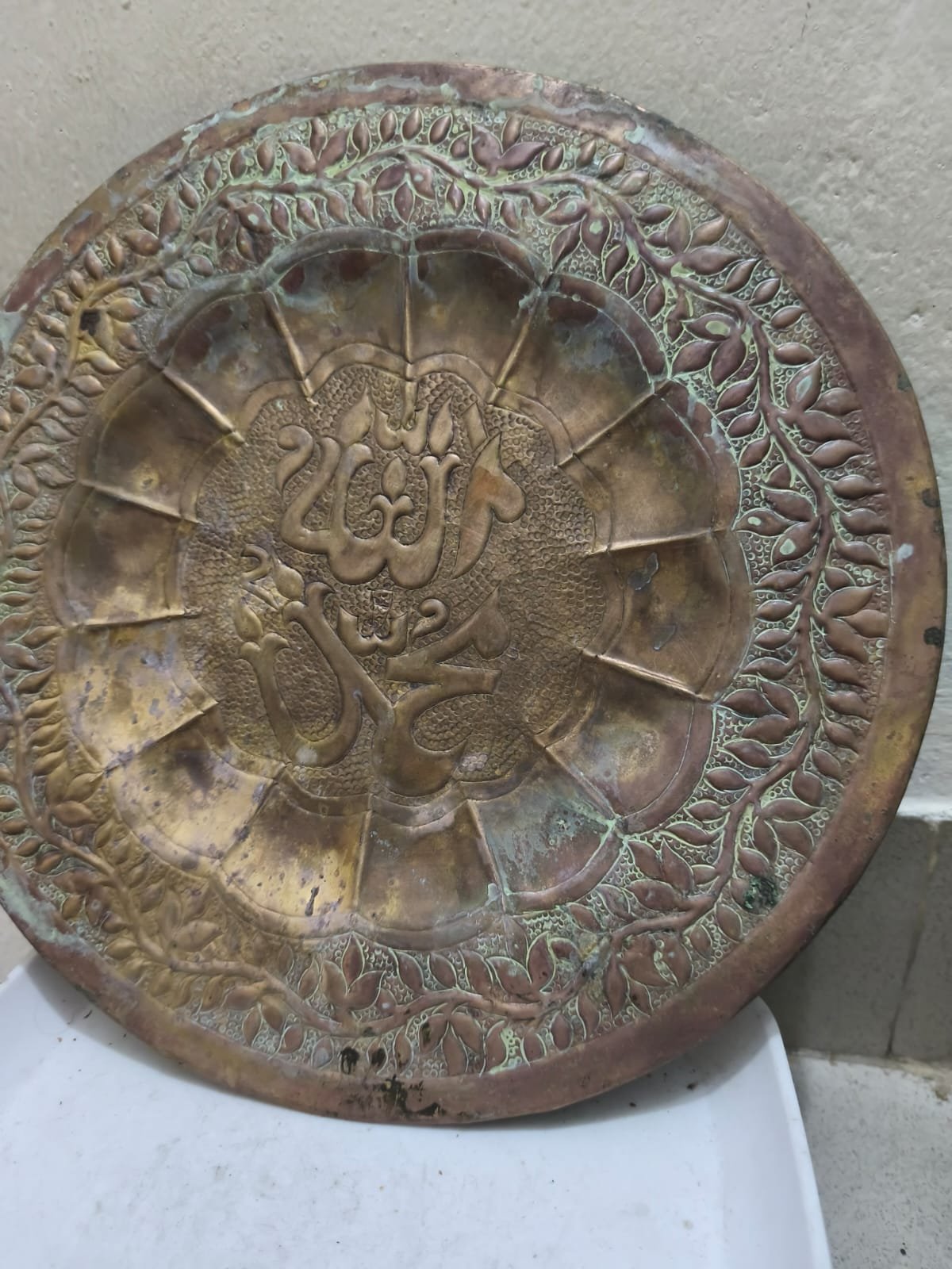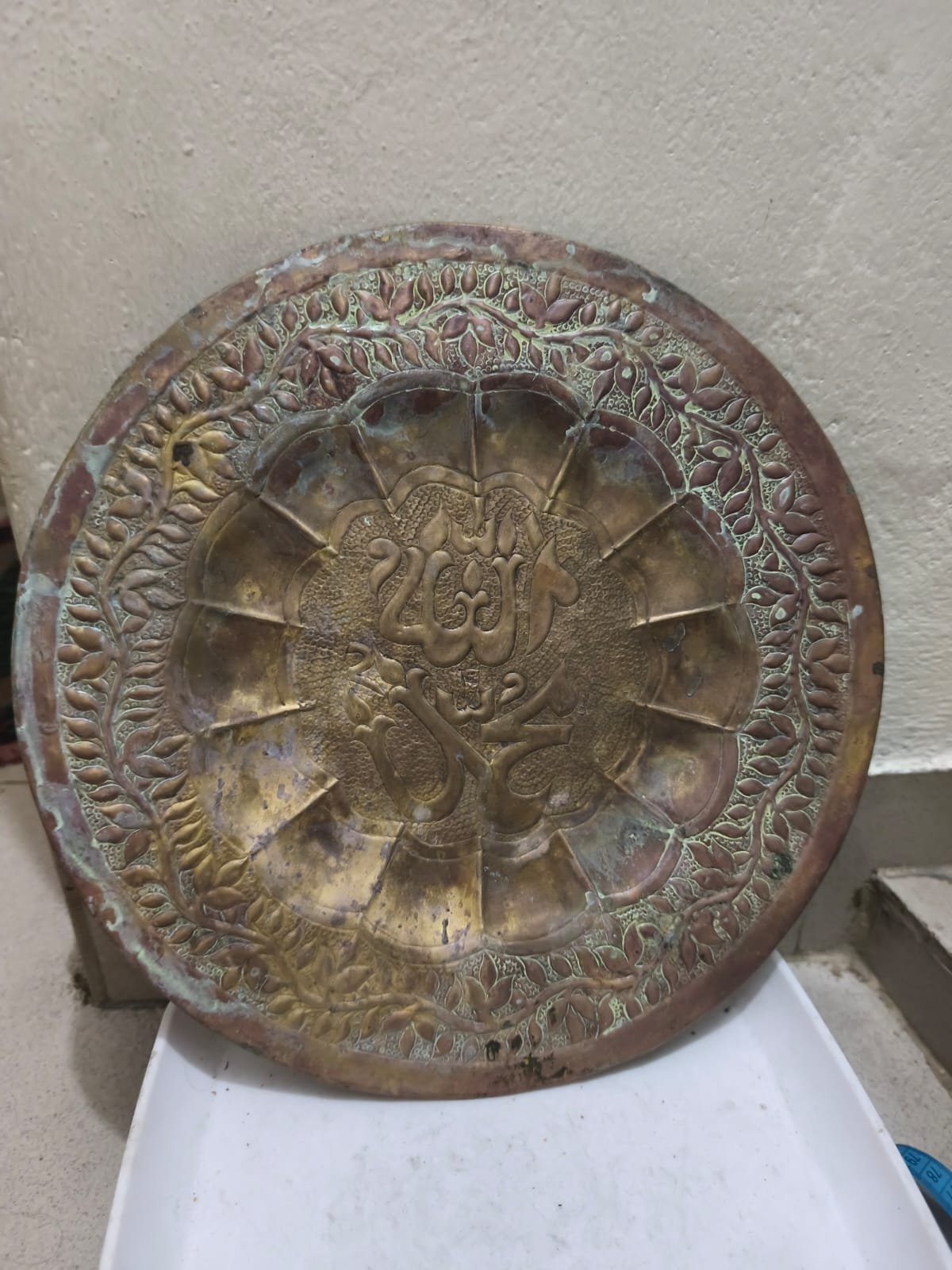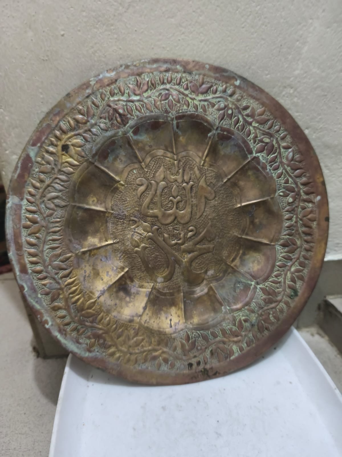 খোদাই করা পিতল বা তামার প্লেট (decorative brass/copper plate)।