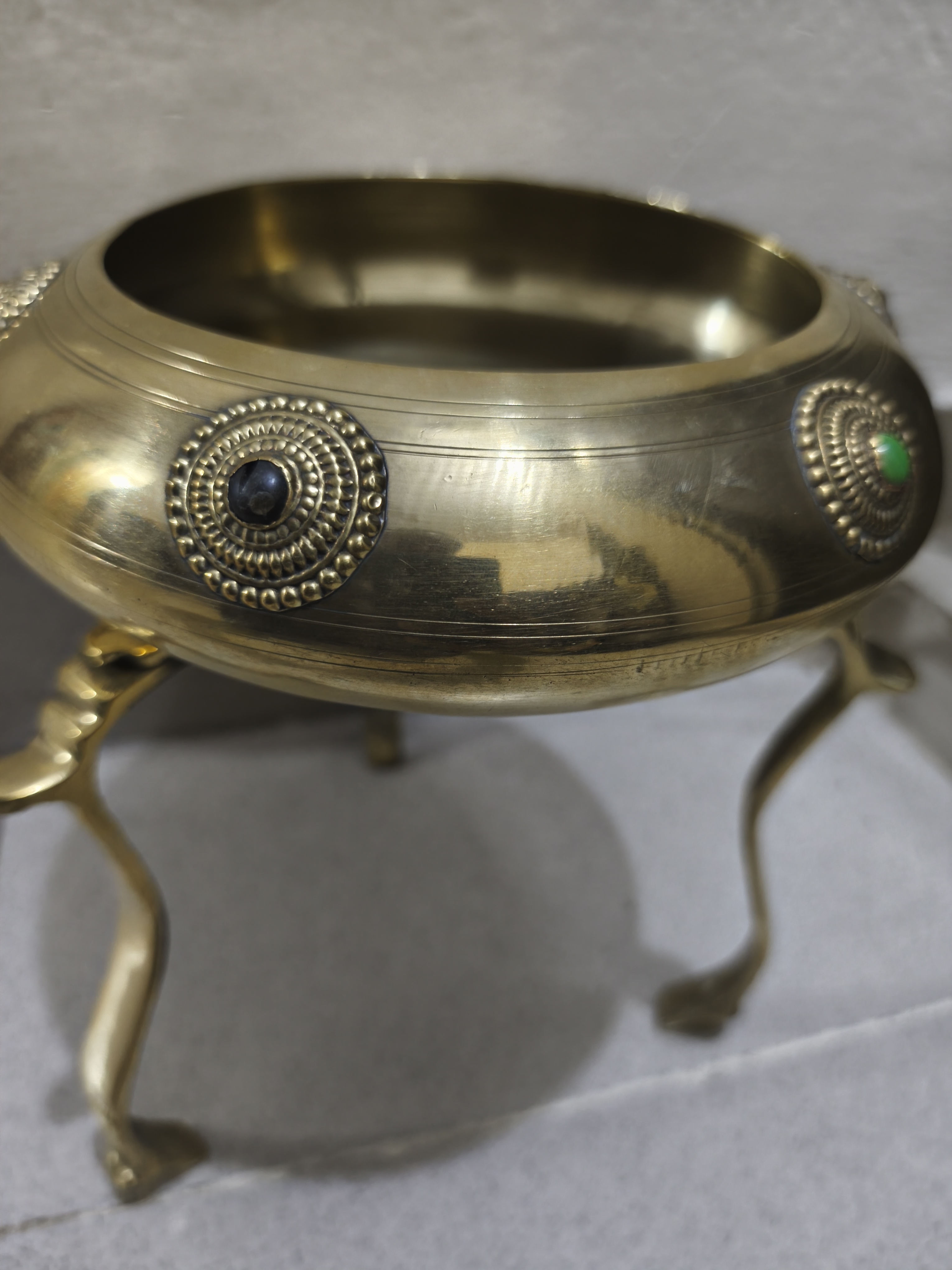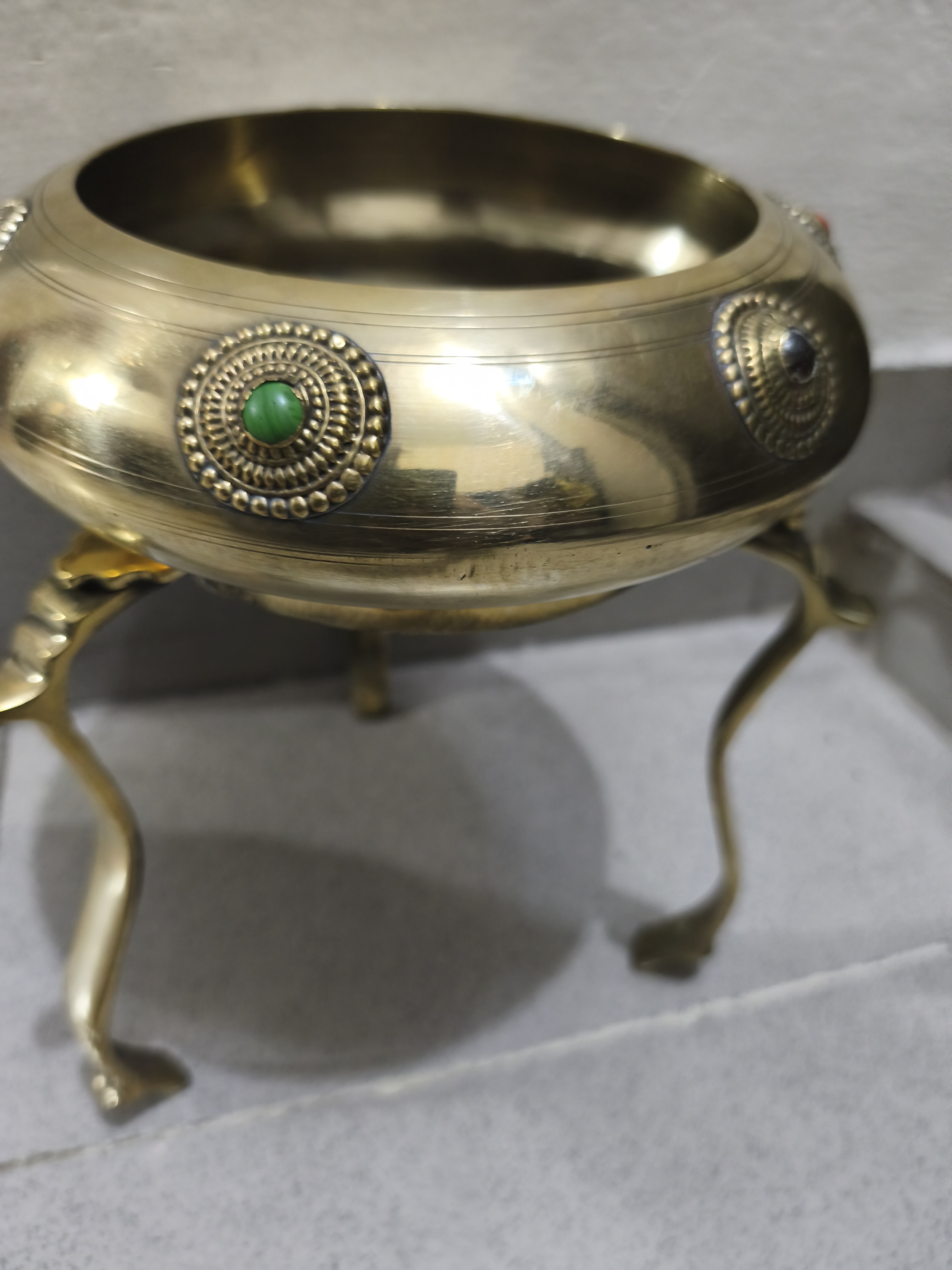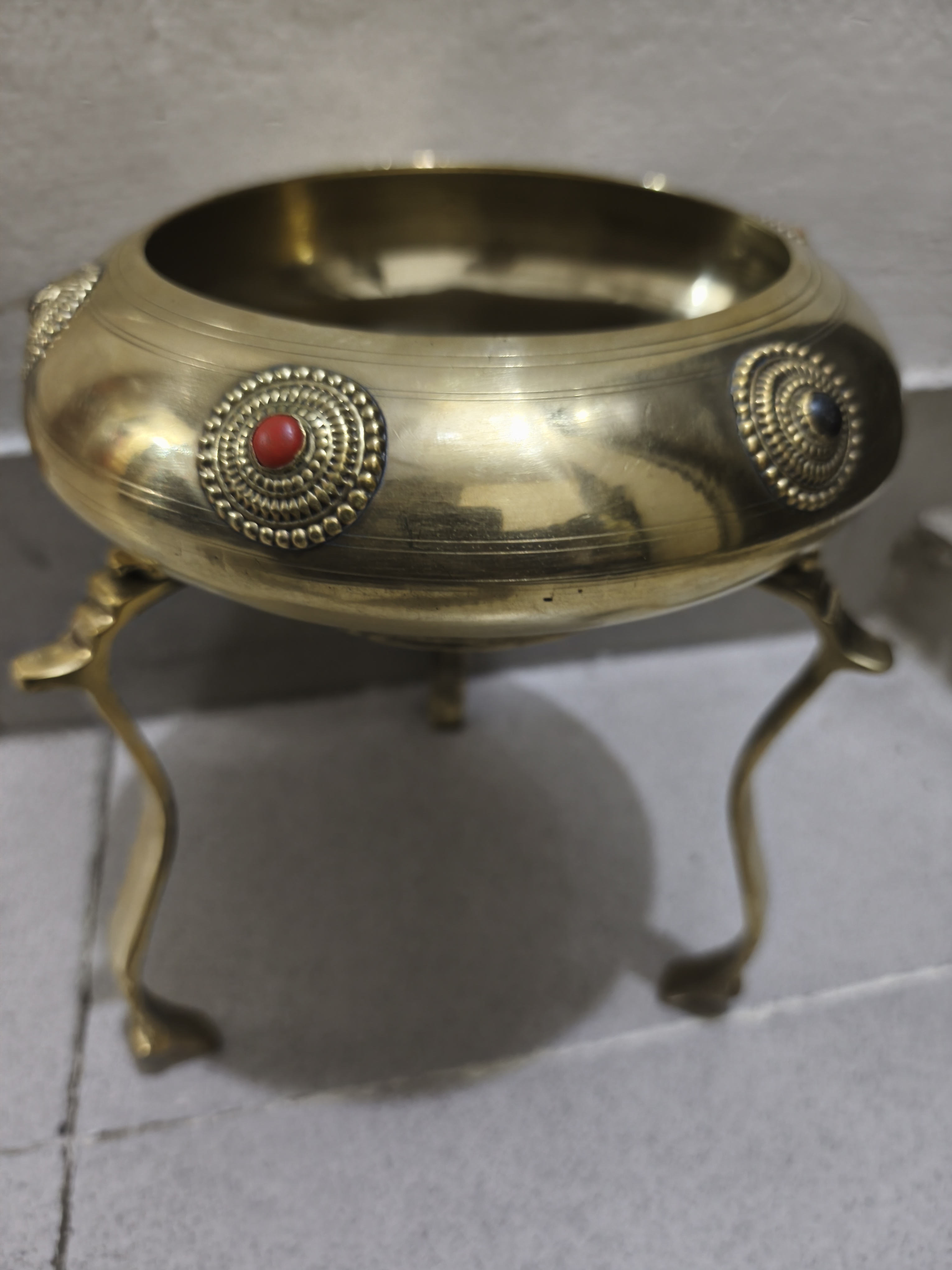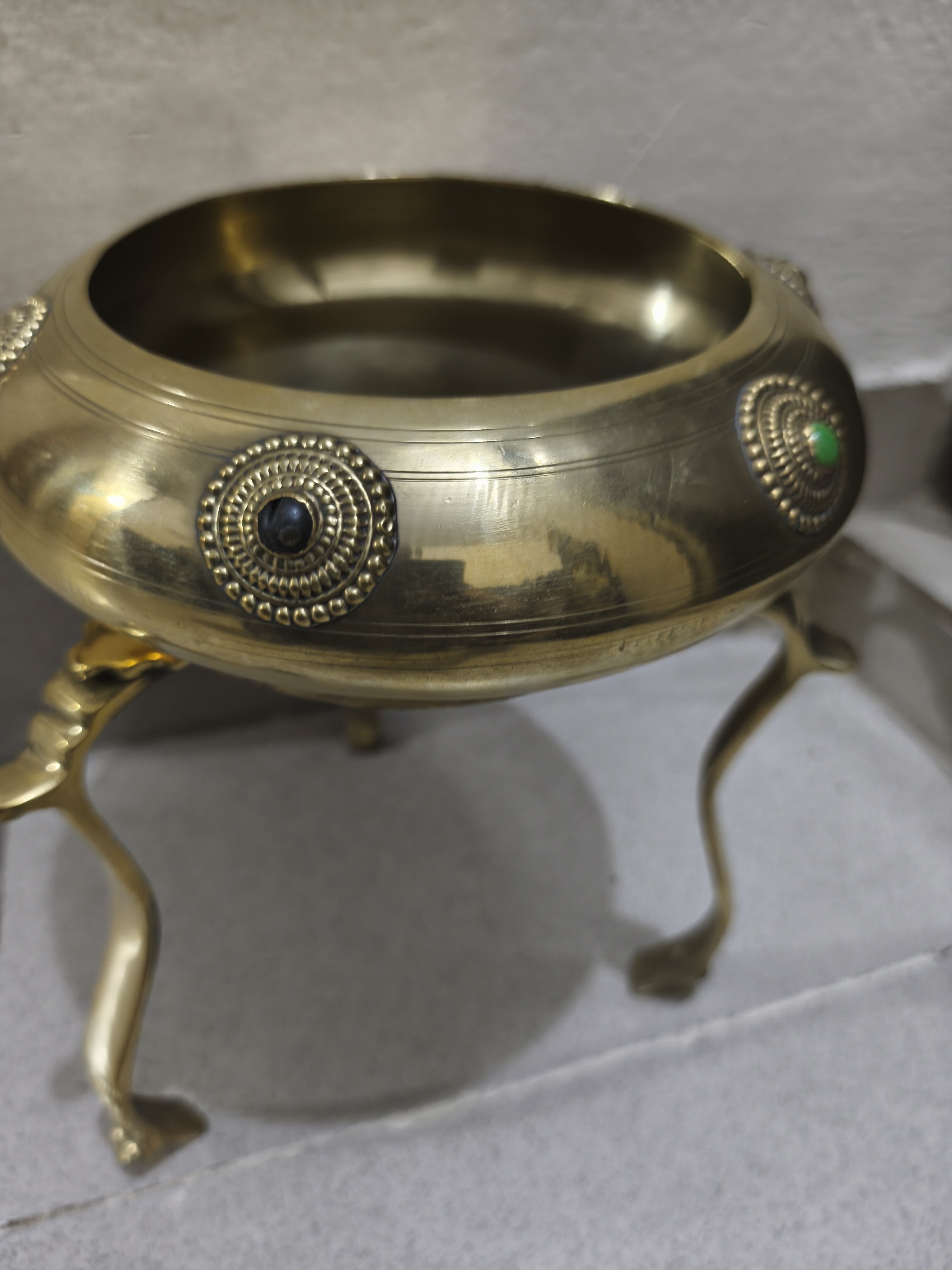 পিতলের অলংকারযুক্ত ত্রিপদী বাটি (Three-legged brass decorative bowl)