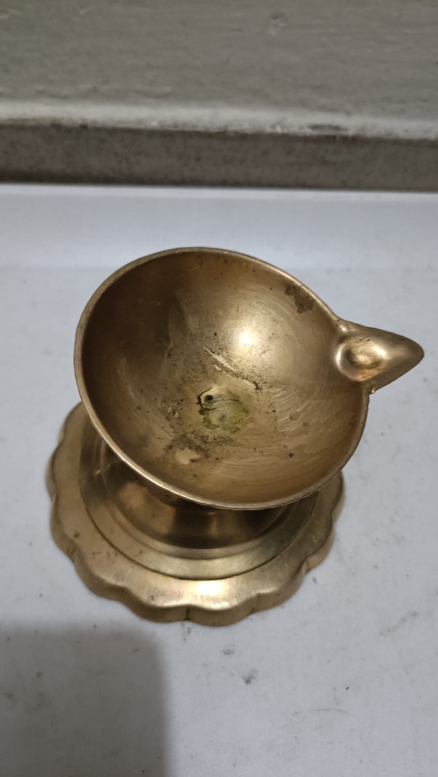 একটি পিতলের প্রদীপ, যা হিন্দু ধর্মীয় অনুষ্ঠানে ব্যবহৃত একটি ঐতিহ্যবাহী তেলের প্রদীপ।