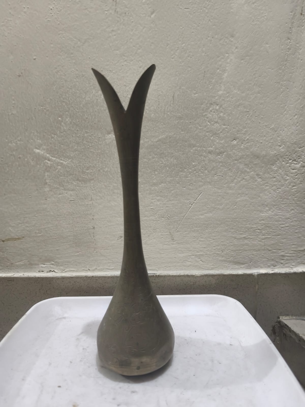 - আকৃতি: ফুলদানিটির নীচের অংশটি নাশপাতি বা কলসের মতো গোল এবং স্ফীত। উপরের দিকে এটি সরু হয়ে গেছে এবং মুখটি ইংরেজি 'Y' অক্ষরের মতো দুটি পাপড়ির আকারে উপরের দিকে প্রসারিত।