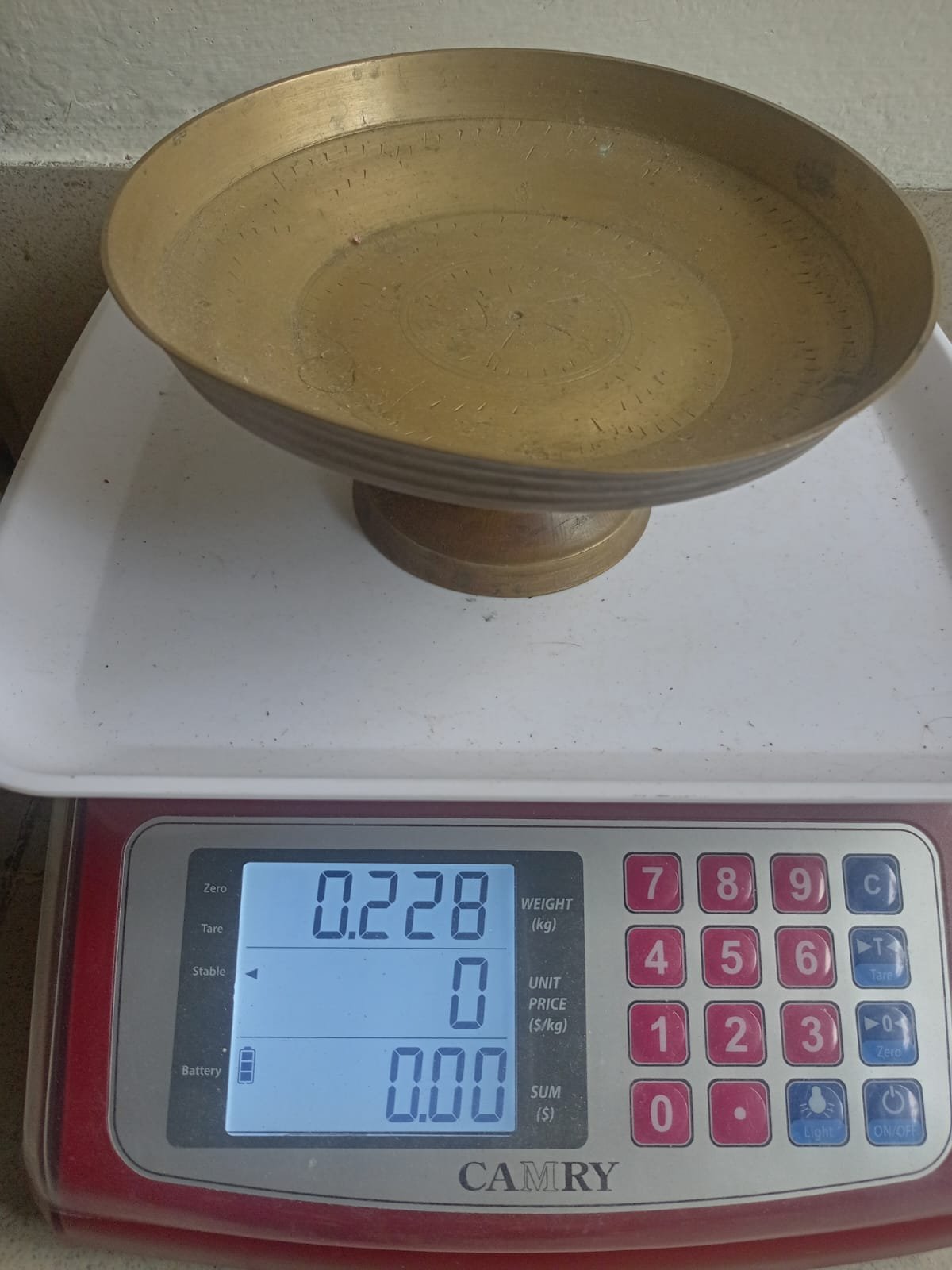 - বর্ণনা: এটি একটি বেস বা "পেডেস্টাল" এর উপর উঁচু একটি বাটি, যা পিতল দিয়ে তৈরি।