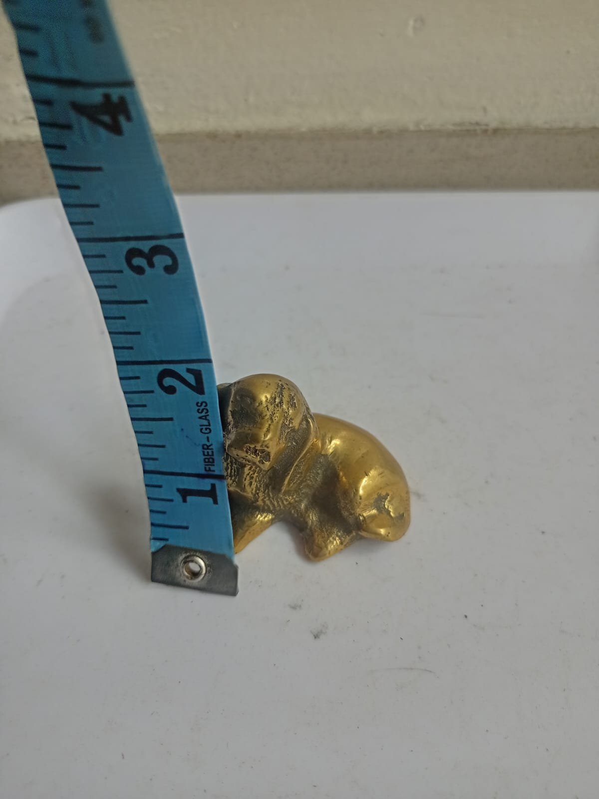 একটি পুরনো শক্ত পিতলের কুকুরের মূর্তি দেখানো হয়েছে , বিশেষ করে একটি স্প্যানিয়েল কুকুরছানার মতো।