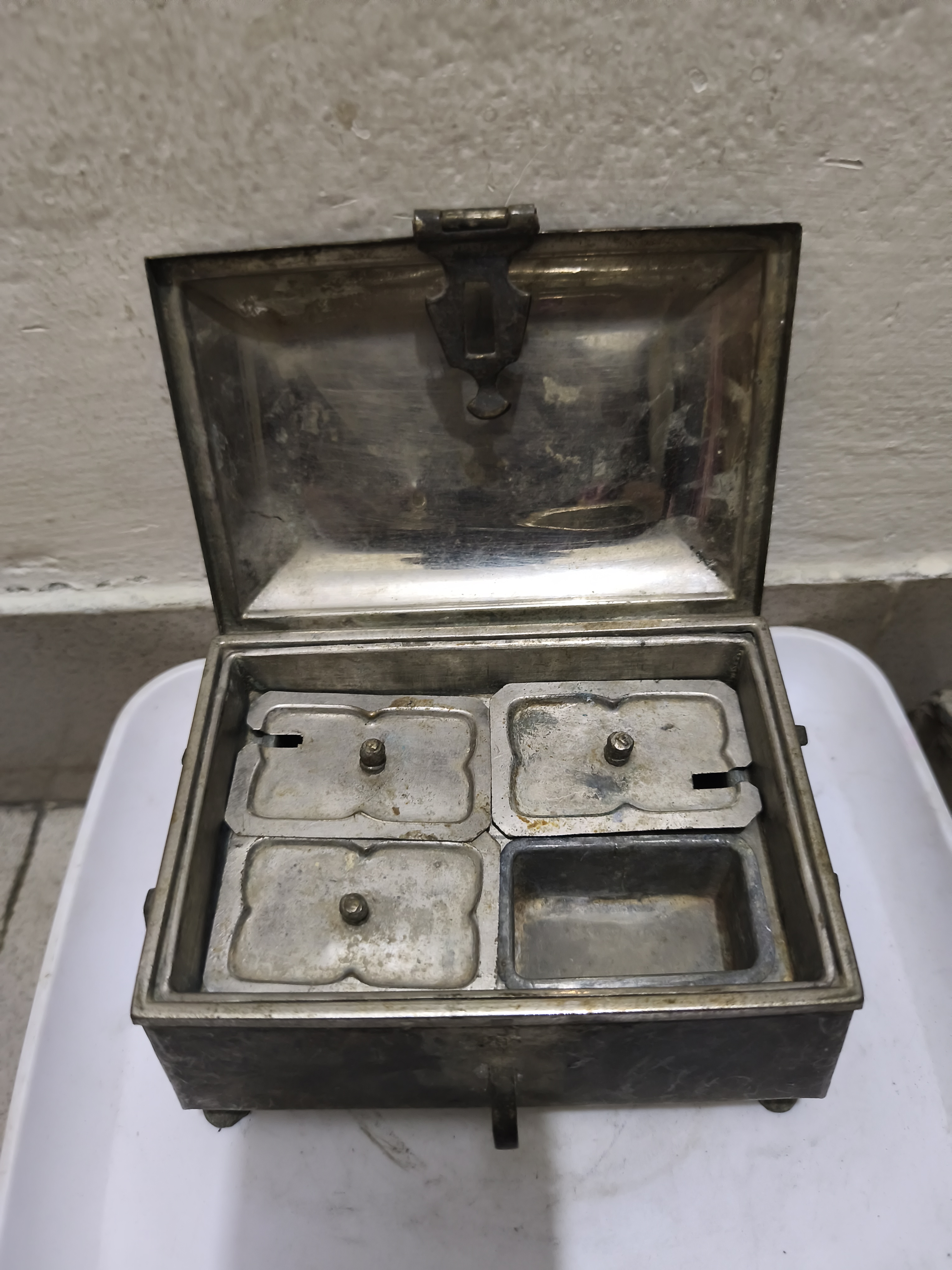 - নকশা: এতে একটি কব্জাযুক্ত ঢাকনা এবং বিভিন্ন মশলা ও উপকরণ সংরক্ষণের জন্য একাধিক ছোট ছোট অভ্যন্তরীণ প্রকোষ্ঠ রয়েছে।