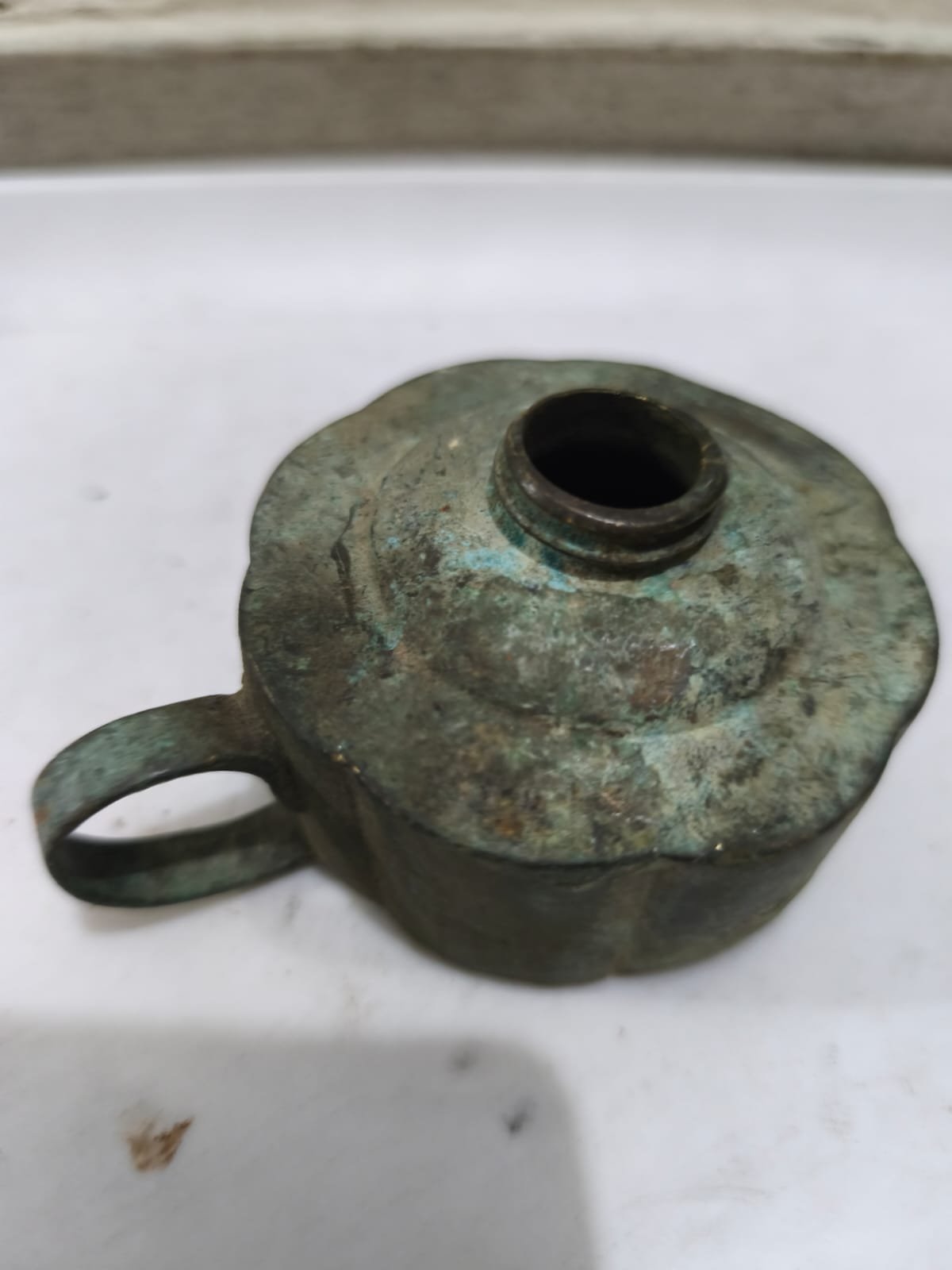 এটি একটি প্রাচীন পিতলের কালির পাত্র। আধুনিক কলম আবিষ্কারের আগে লেখার জন্য এই ধরণের কালির পাত্র অপরিহার্য হাতিয়ার ছিল।