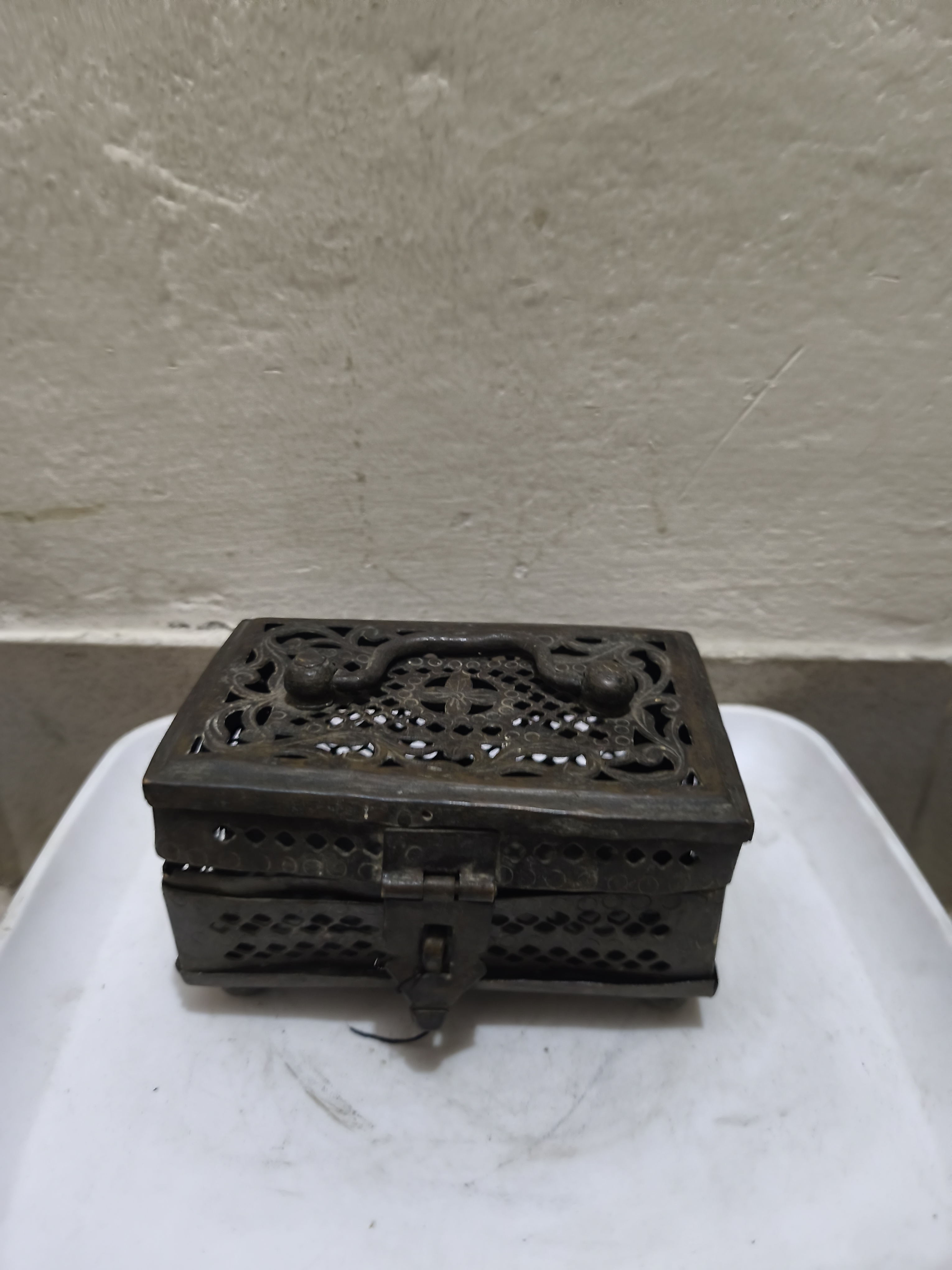 - ডিজাইন: এতে রয়েছে হাতলসহ একটি কব্জাযুক্ত ঢাকনা, একটি হ্যাস্প লক এবং ছোট গোলাকার পা।
