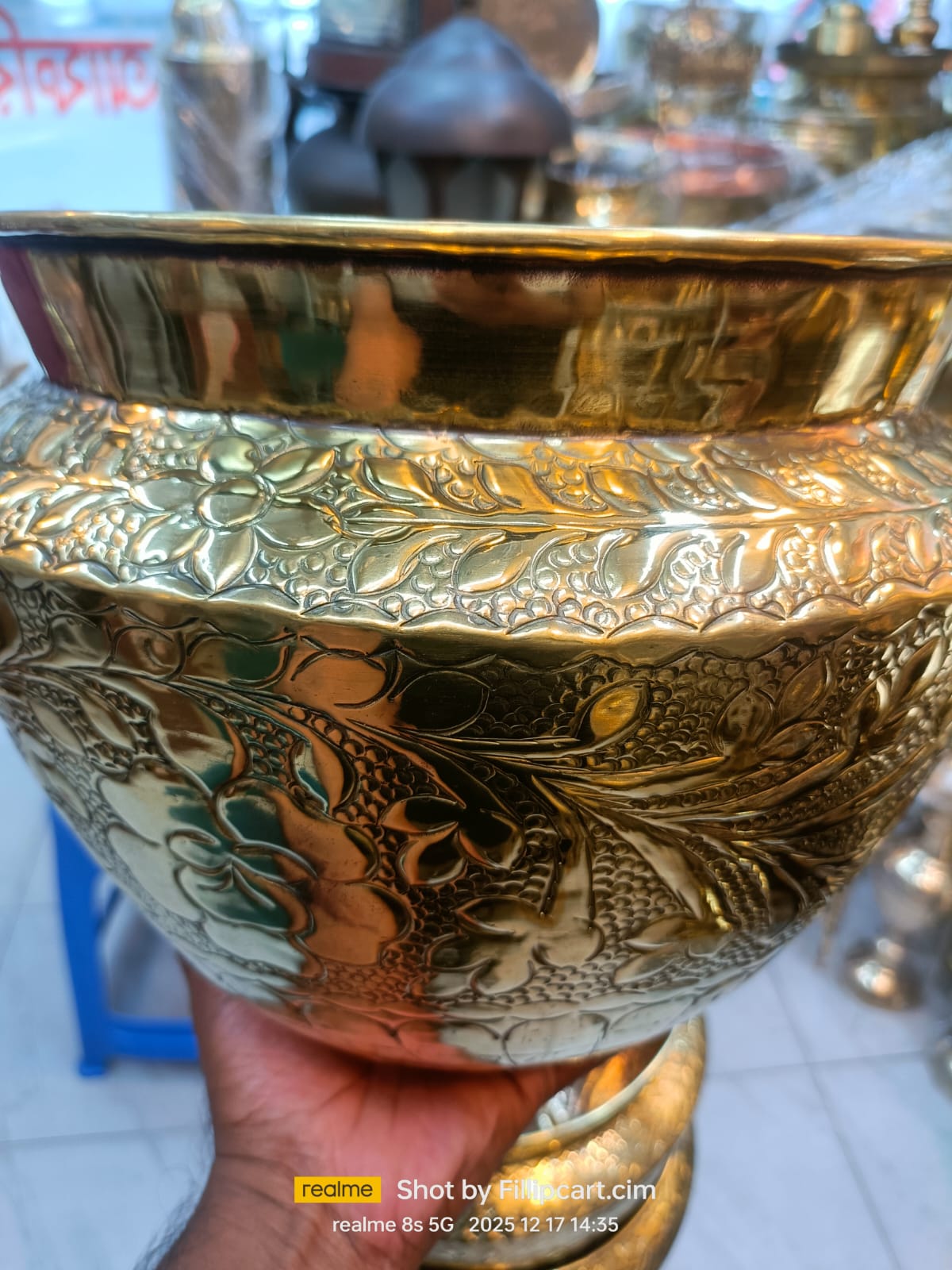 হাতখোদাই নকশাযুক্ত পিতলের ফুলদানি