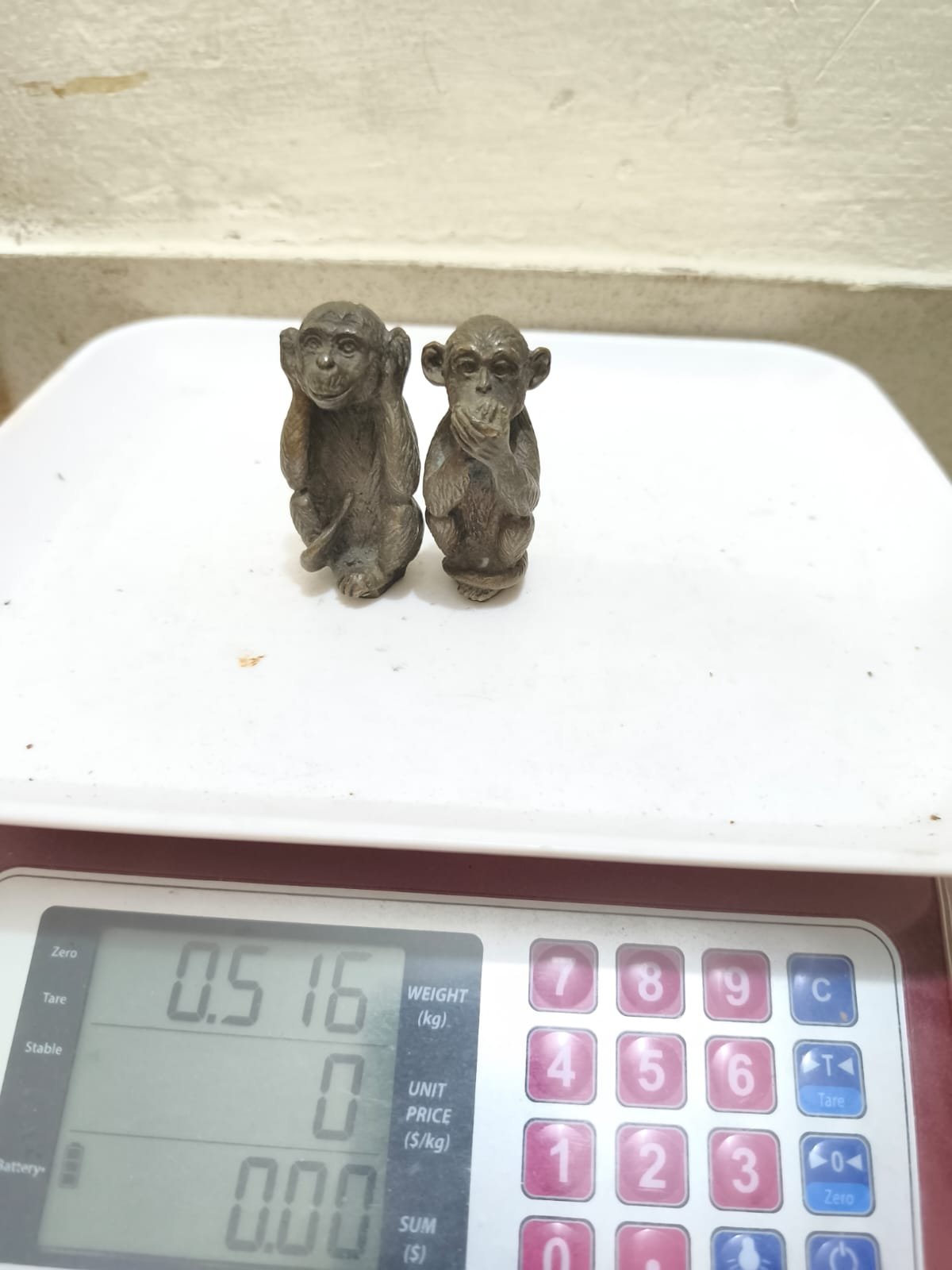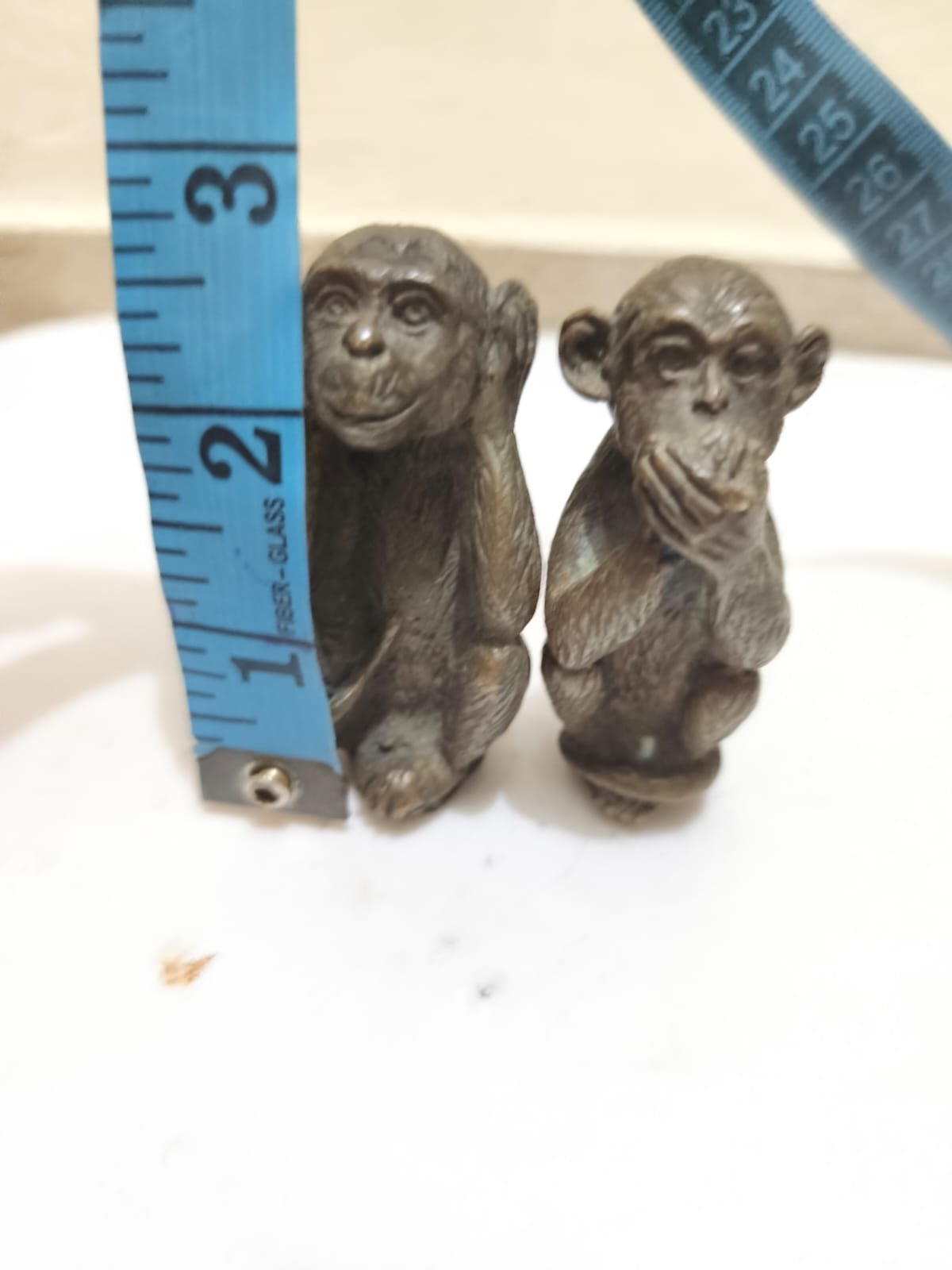 Antique পিতলের দুটি বানরের ছোট ধাতব মূর্তি